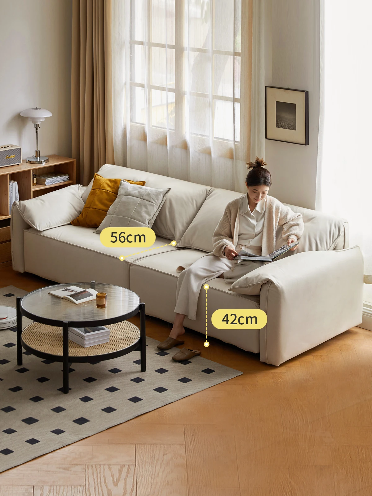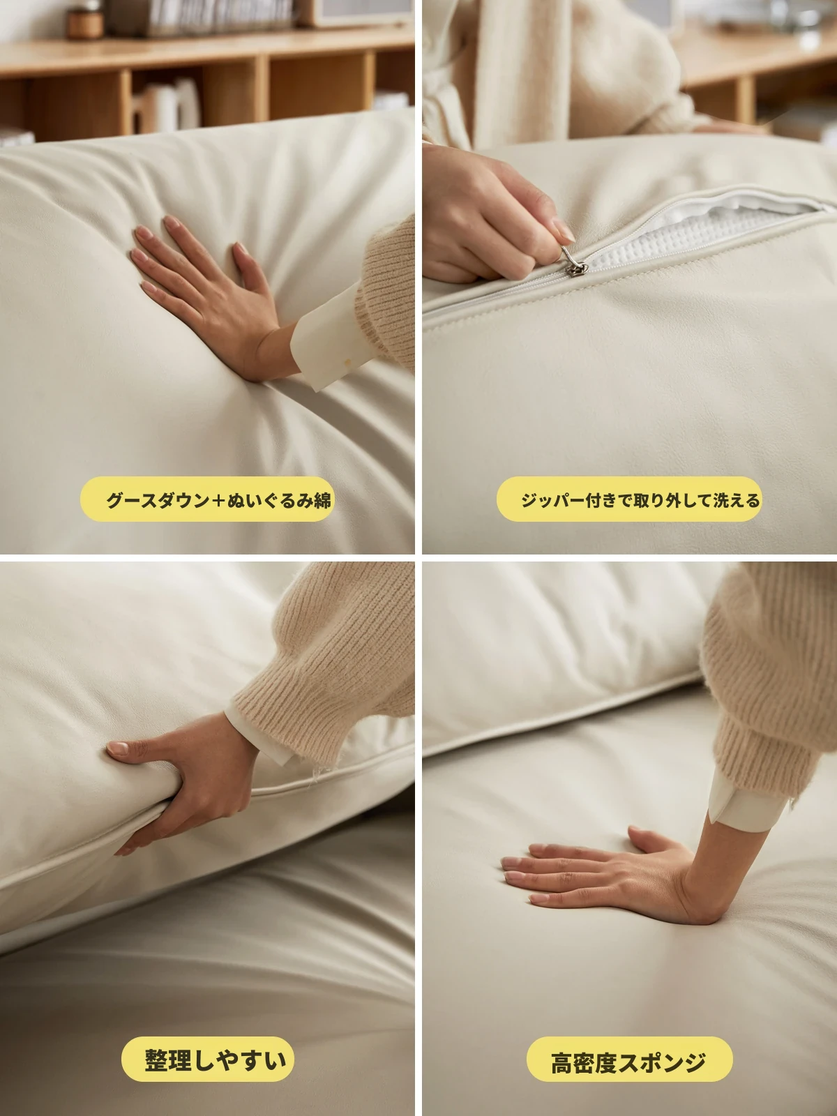 2.2m三人掛け(ヌバックアイボリーホワイト)(2200*980*780mm)