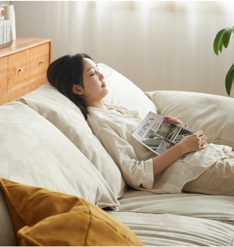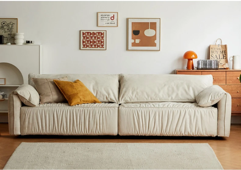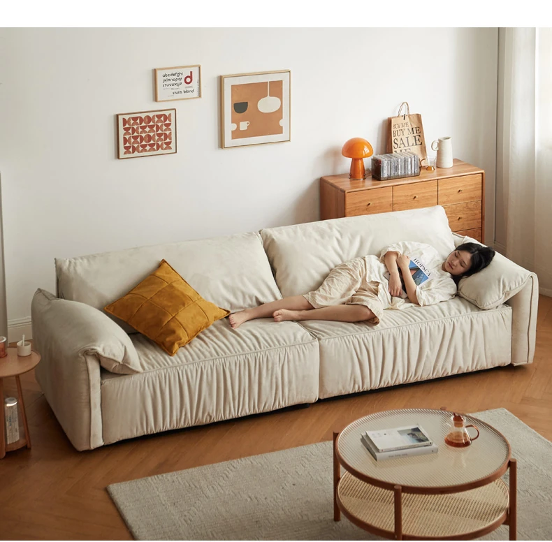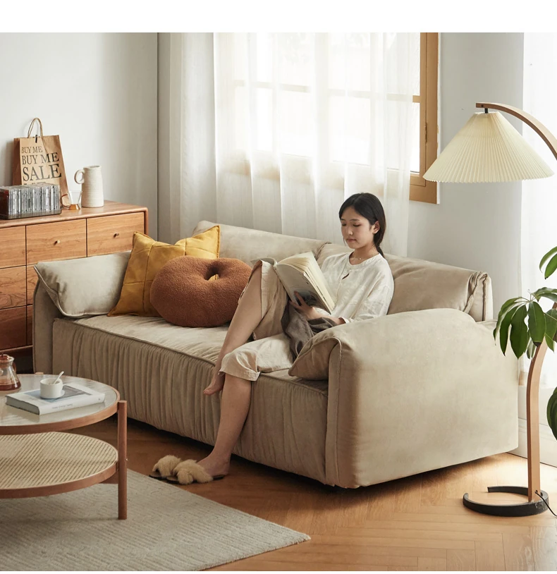 【魅力家居】ヴィサ布ファブリックソファー - イタリア風の軽奢小型リビング用リラックスソファ!スエード調で、家で象の耳のような快適な寛ぎを。
