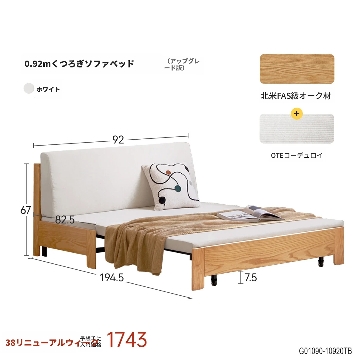 0.92mソファベッド-ホワイト(920*840*670mm)