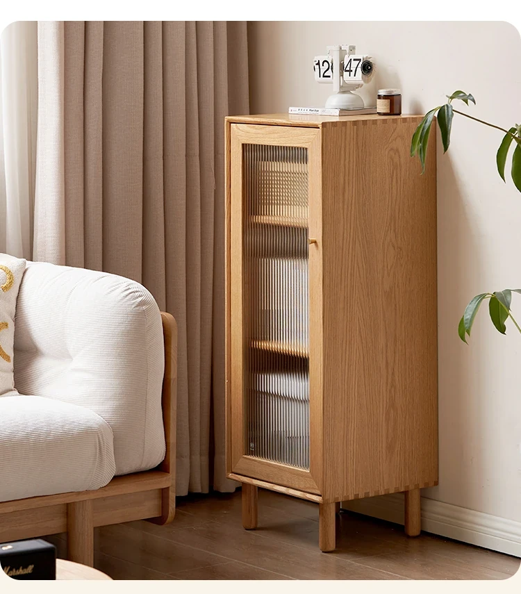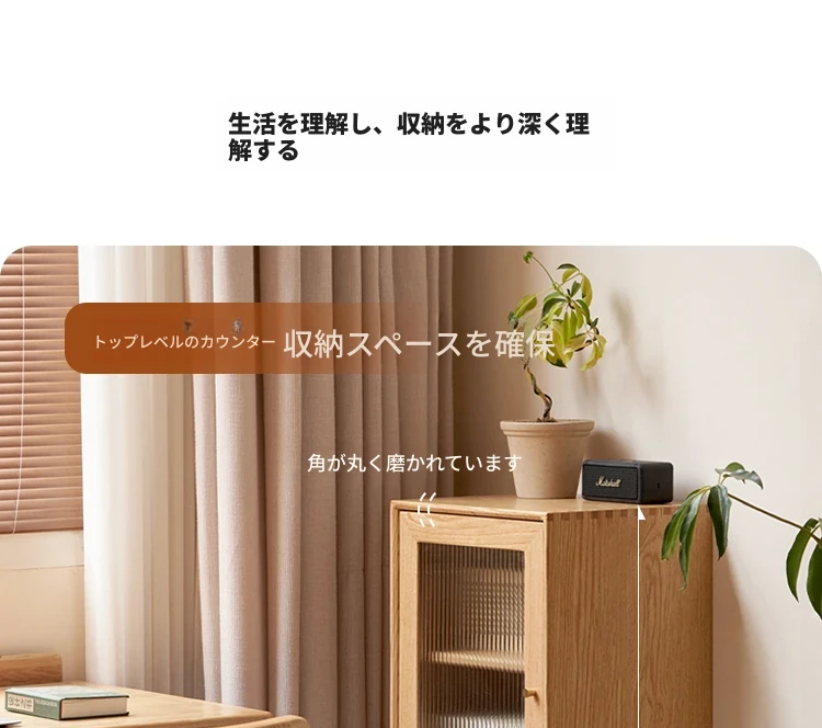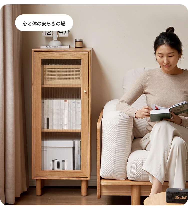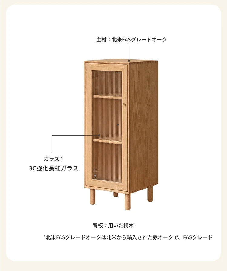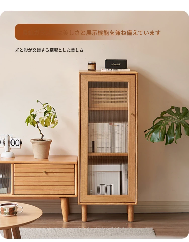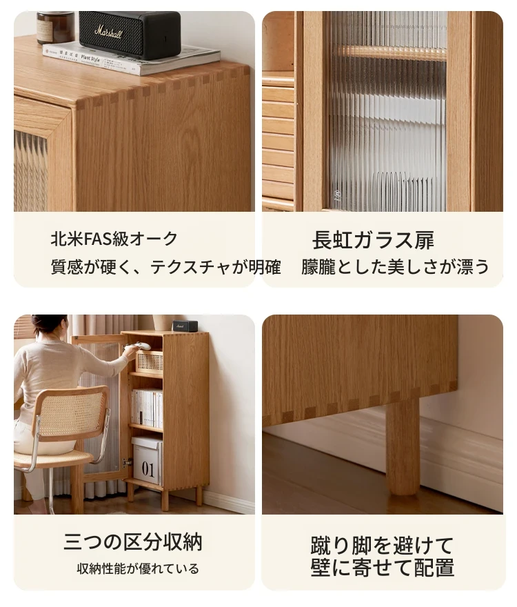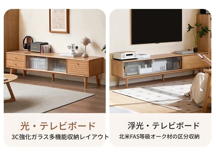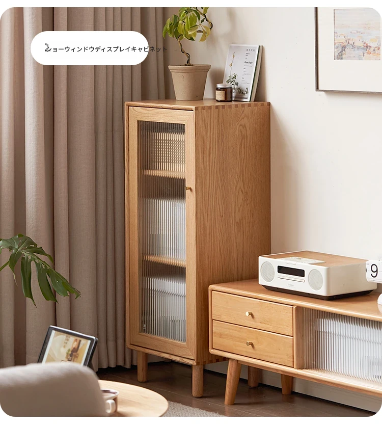ウィシャ全木製テレビサイドキャビネット - リビングルームに最適なオーク製収納キャビネット!スタイリッシュで機能的、壁にぴったりフィットし、あなたのリビングをおしゃれに演出します。