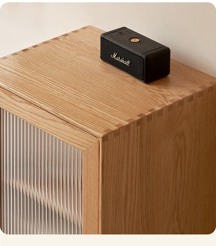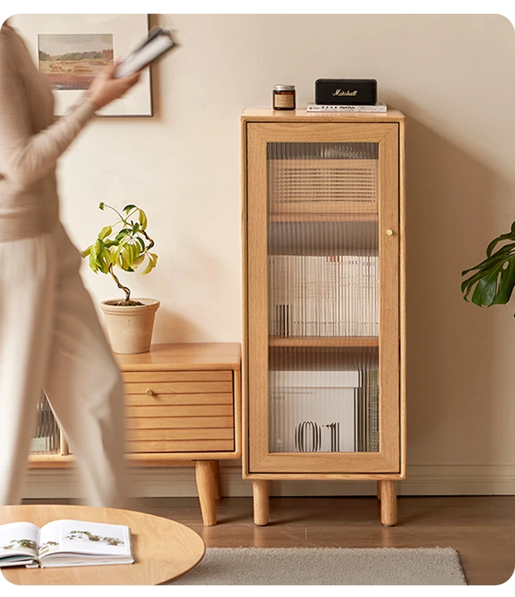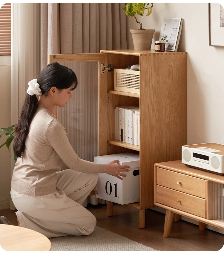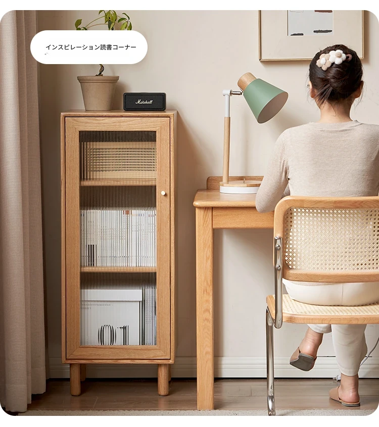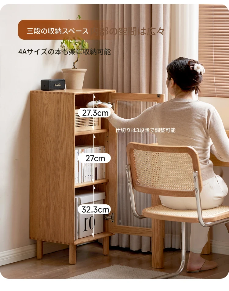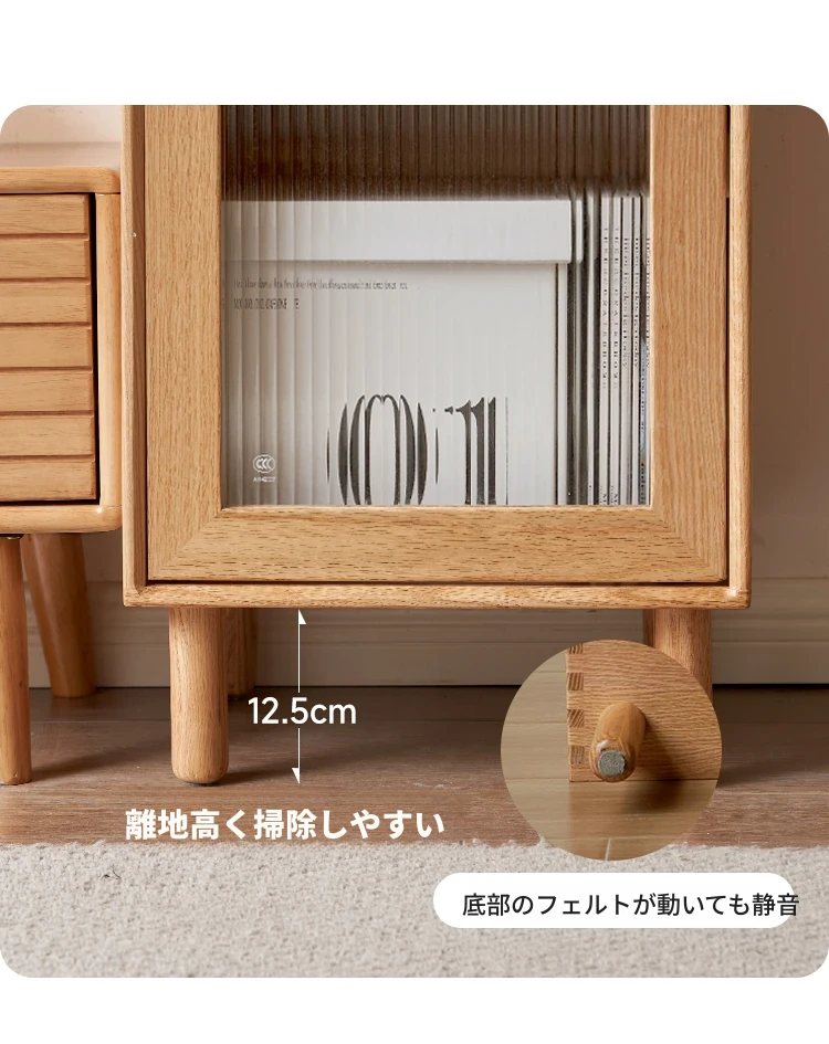 ウィシャ全木製テレビサイドキャビネット - リビングルームに最適なオーク製収納キャビネット!スタイリッシュで機能的、壁にぴったりフィットし、あなたのリビングをおしゃれに演出します。