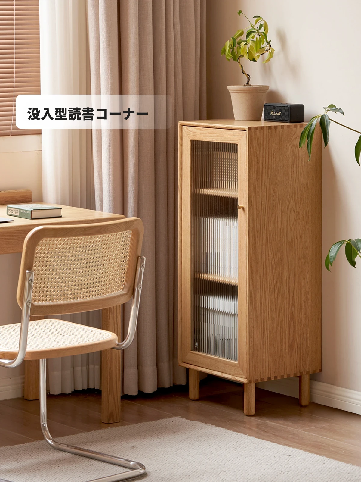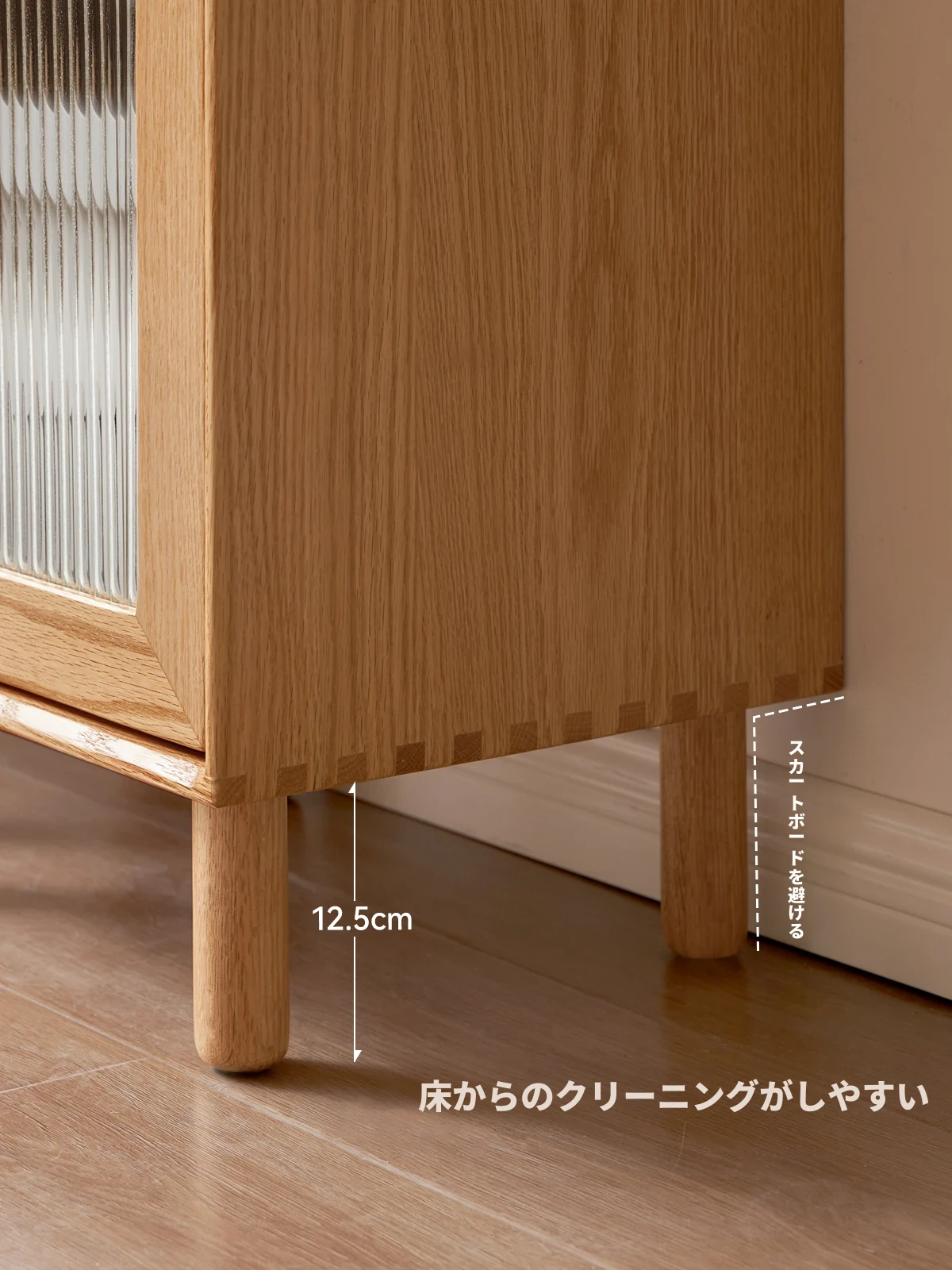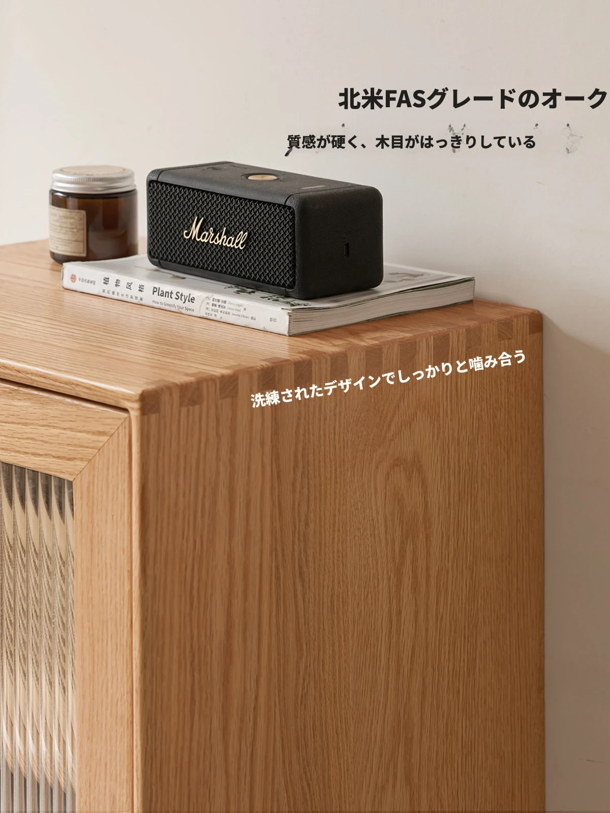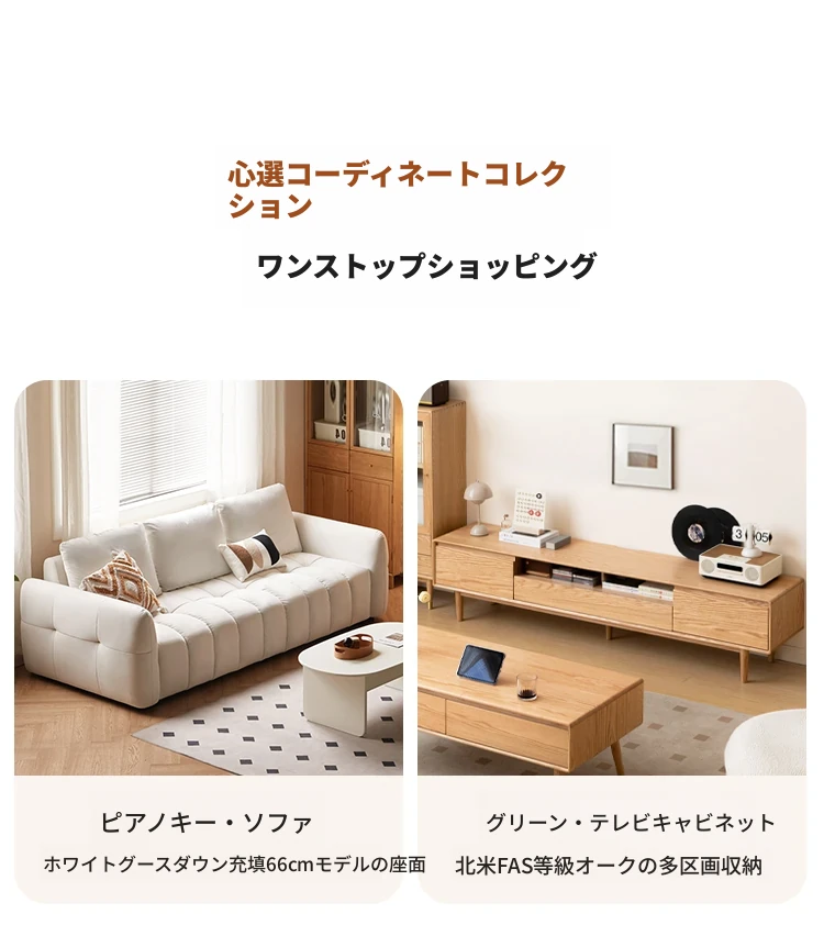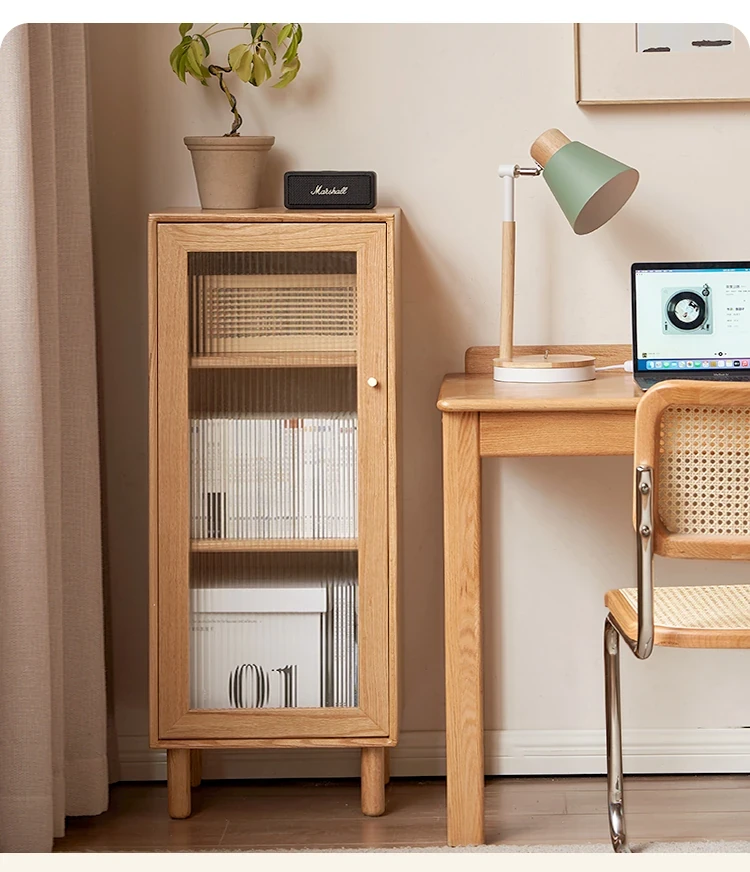 ウィシャ全木製テレビサイドキャビネット - リビングルームに最適なオーク製収納キャビネット!スタイリッシュで機能的、壁にぴったりフィットし、あなたのリビングをおしゃれに演出します。