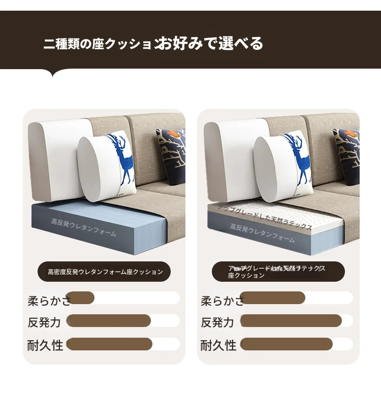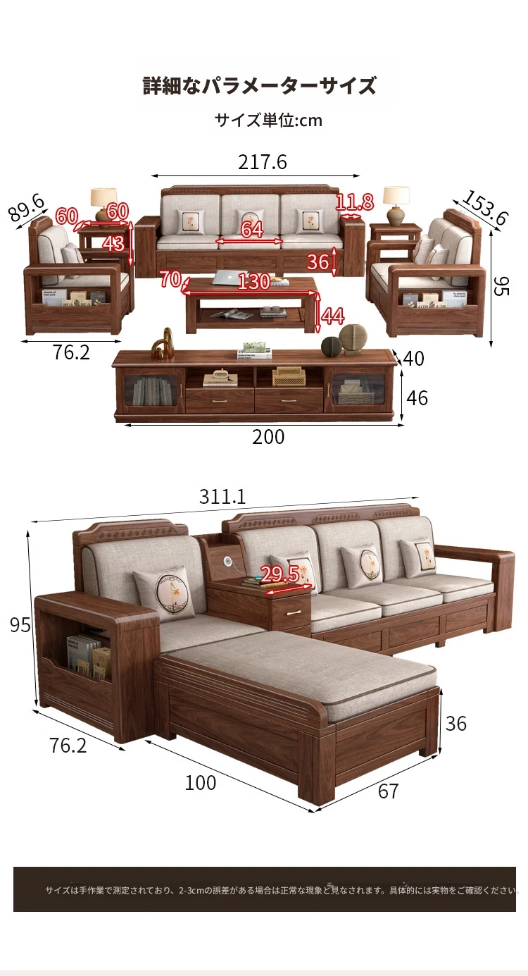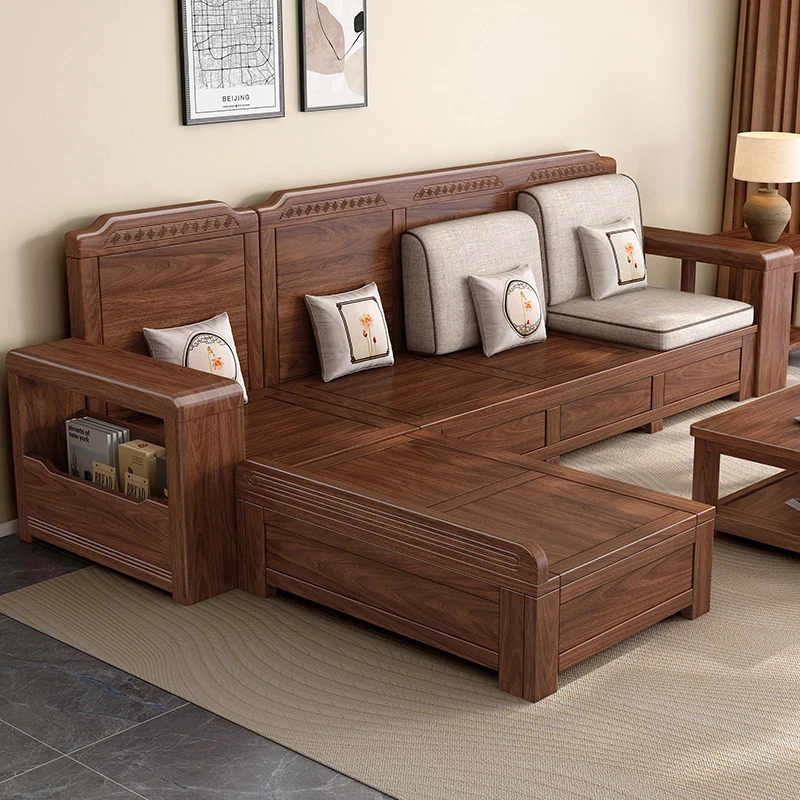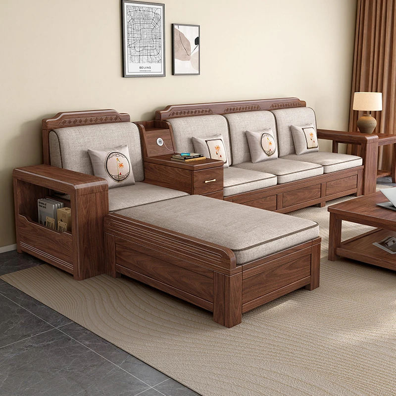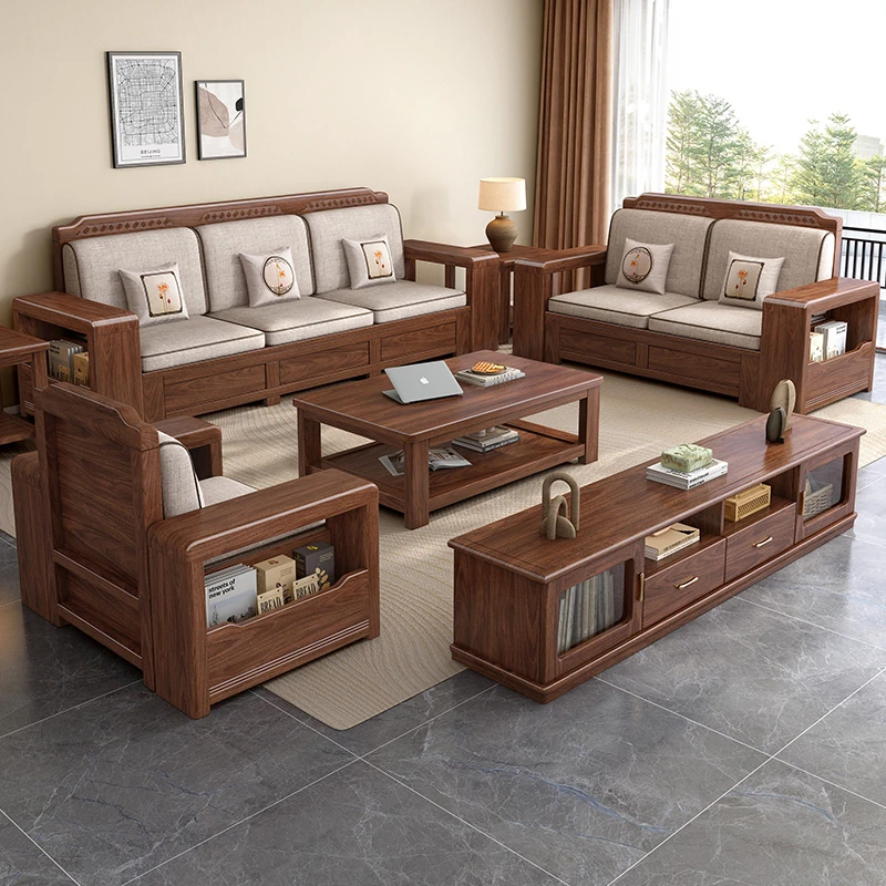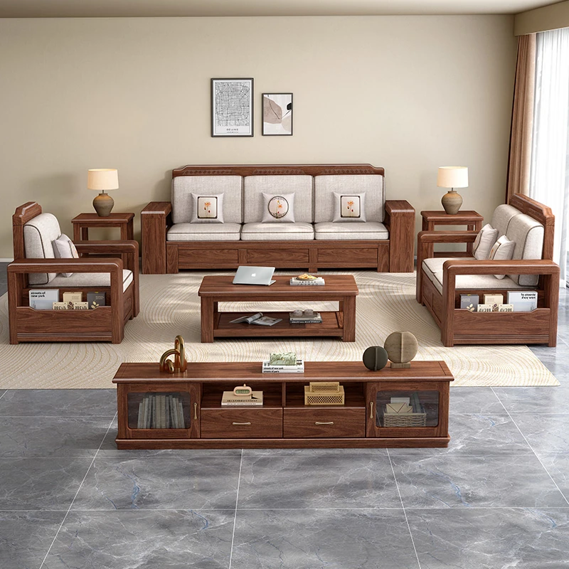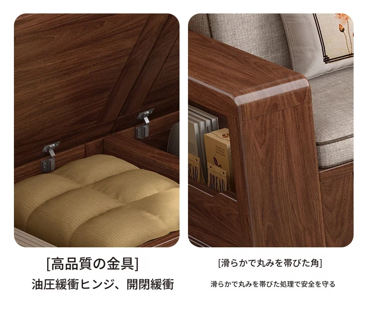 志遠家具の新中式スタイル!ブラックウォールナット無垢材使用、コンパクトなリビングに最適な2WAYファブリックソファ。冬も夏も快適にお使いいただけます!