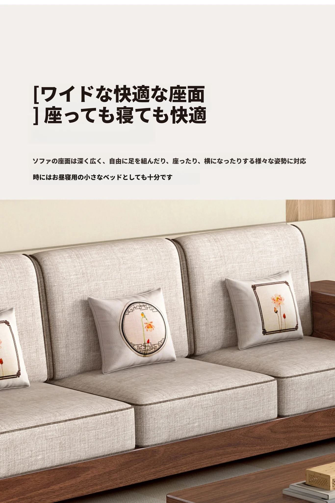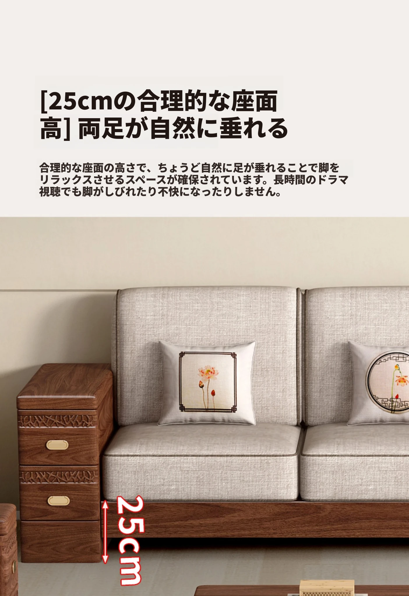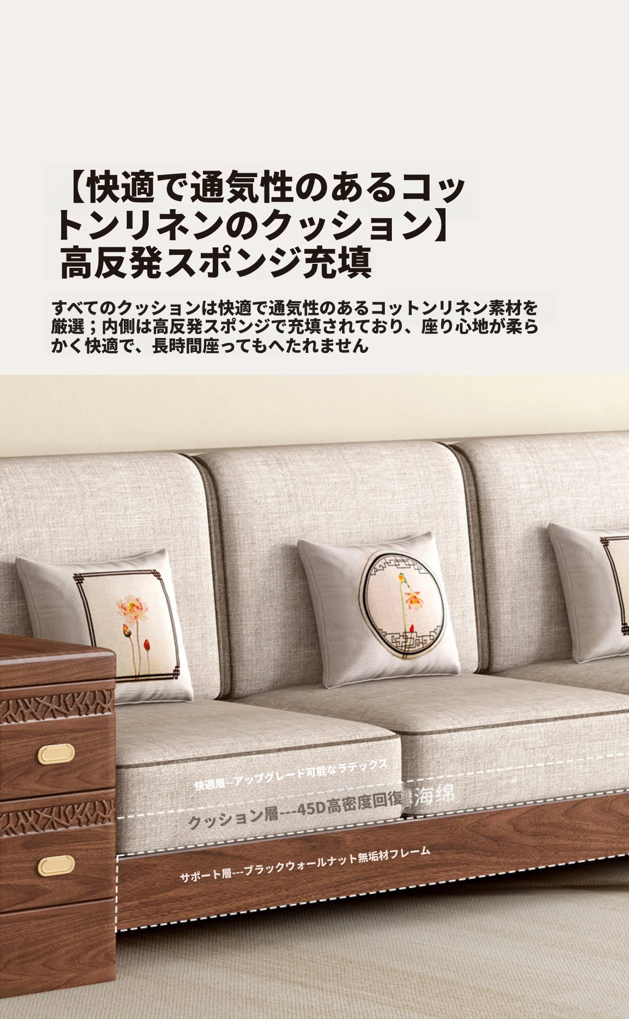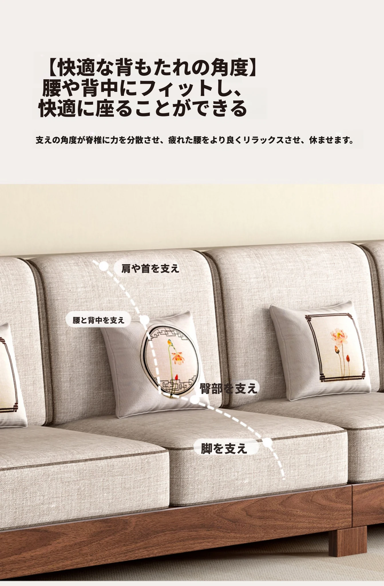 志遠家具 新中式 デザイン 厚手無垢材ソファ ブラックウォールナット製 小型・大型住宅対応 冬夏兼用 リビング用 貴妃ソファで快適空間を演出!