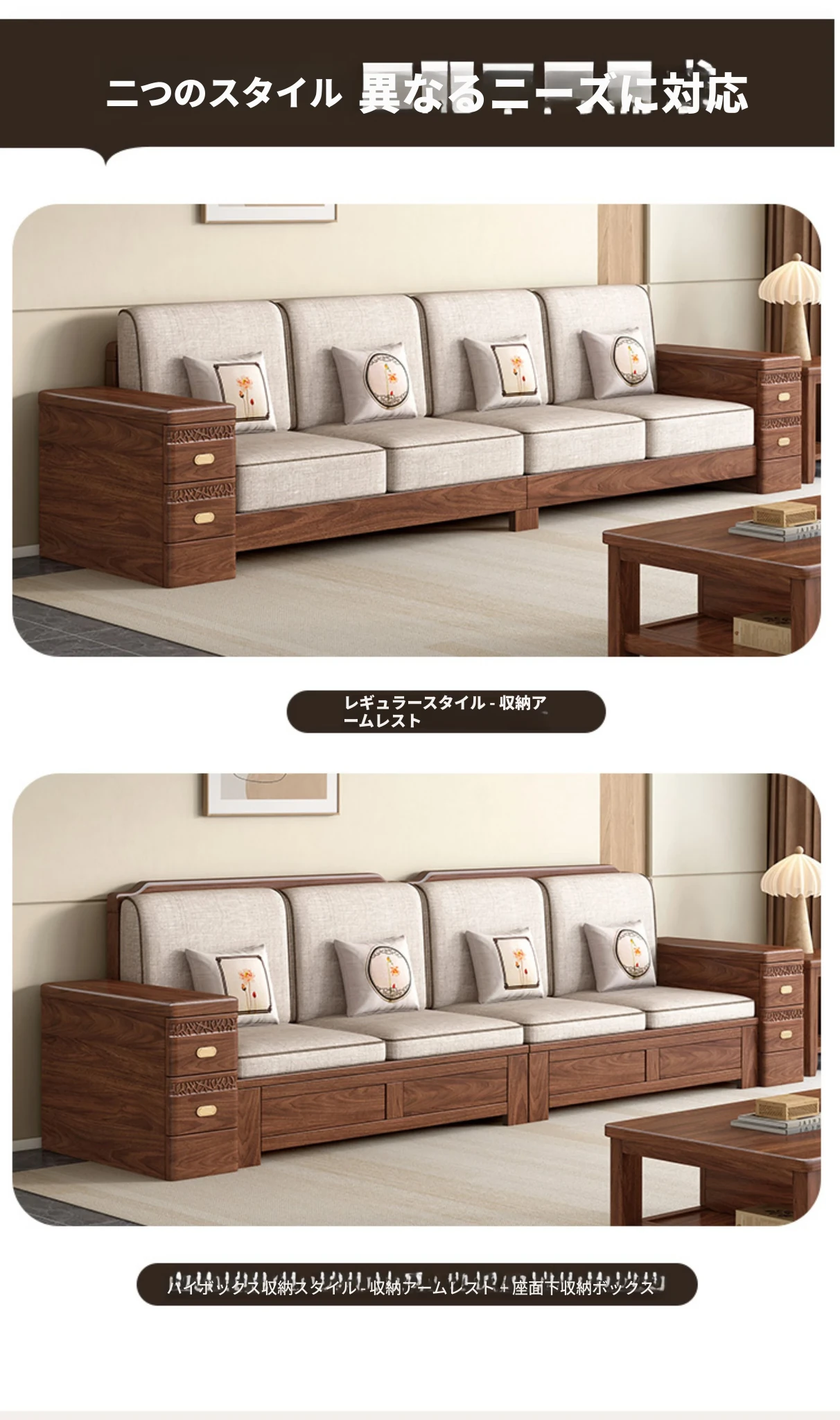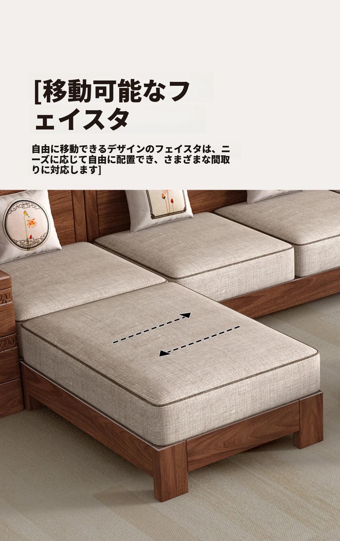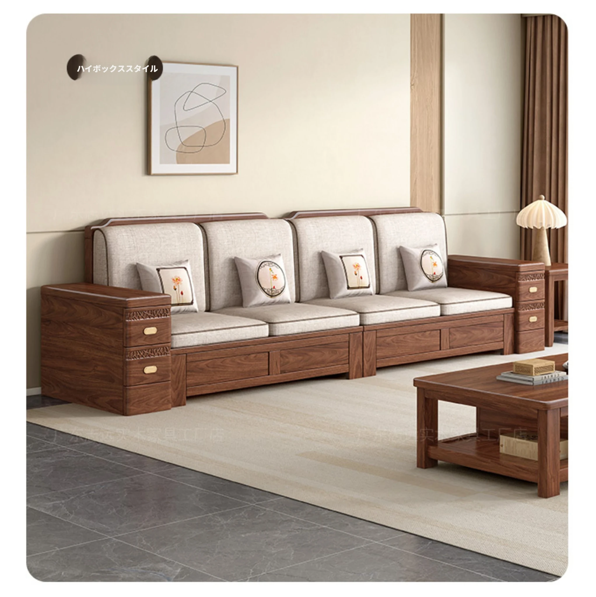 志遠家具 新中式 デザイン 厚手無垢材ソファ ブラックウォールナット製 小型・大型住宅対応 冬夏兼用 リビング用 貴妃ソファで快適空間を演出!