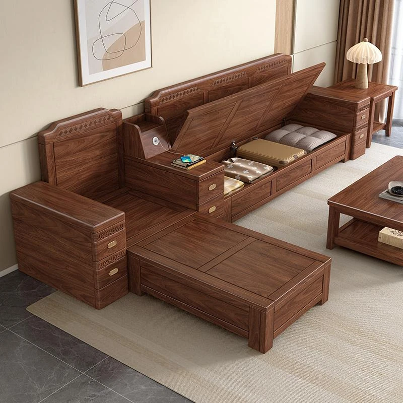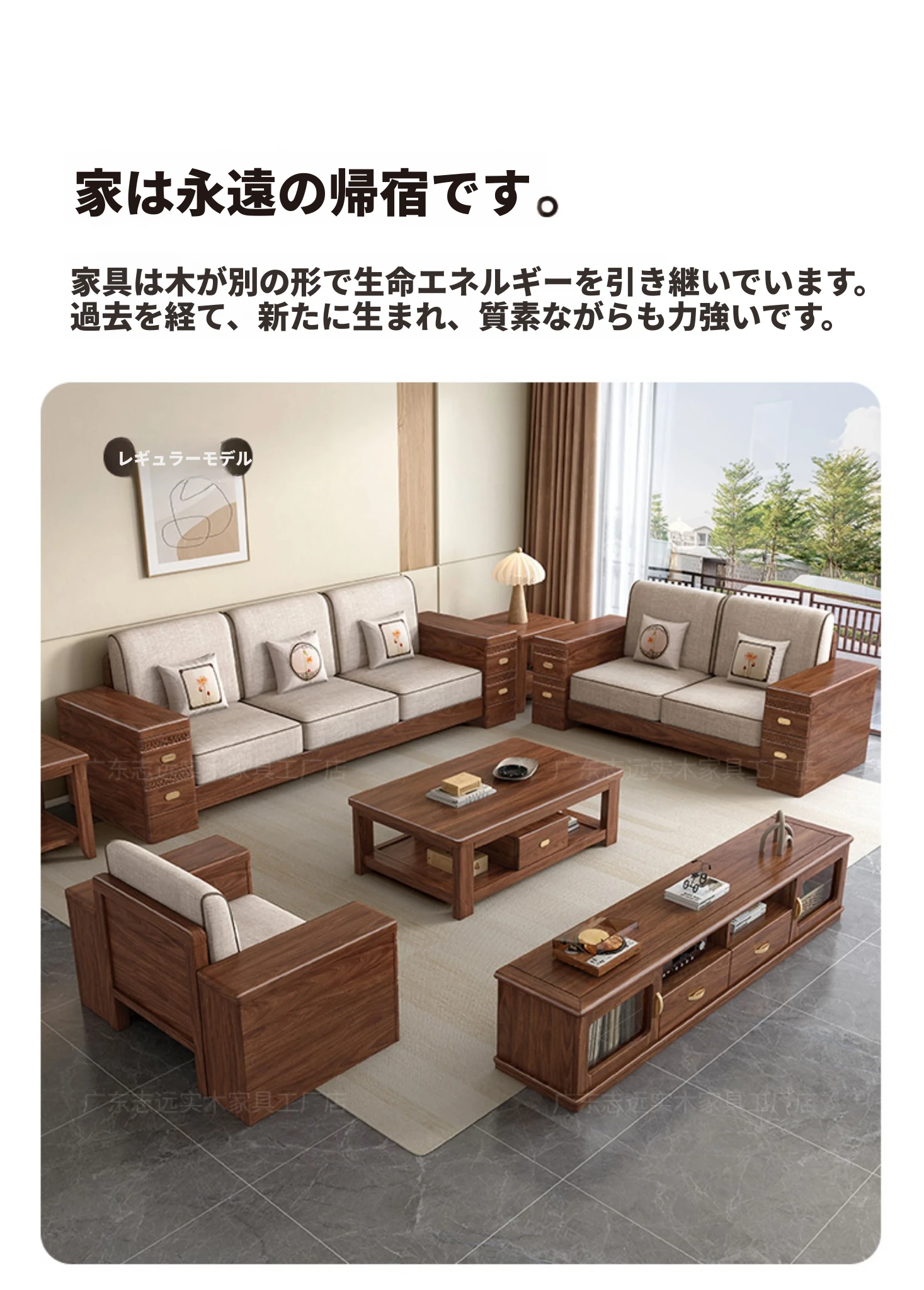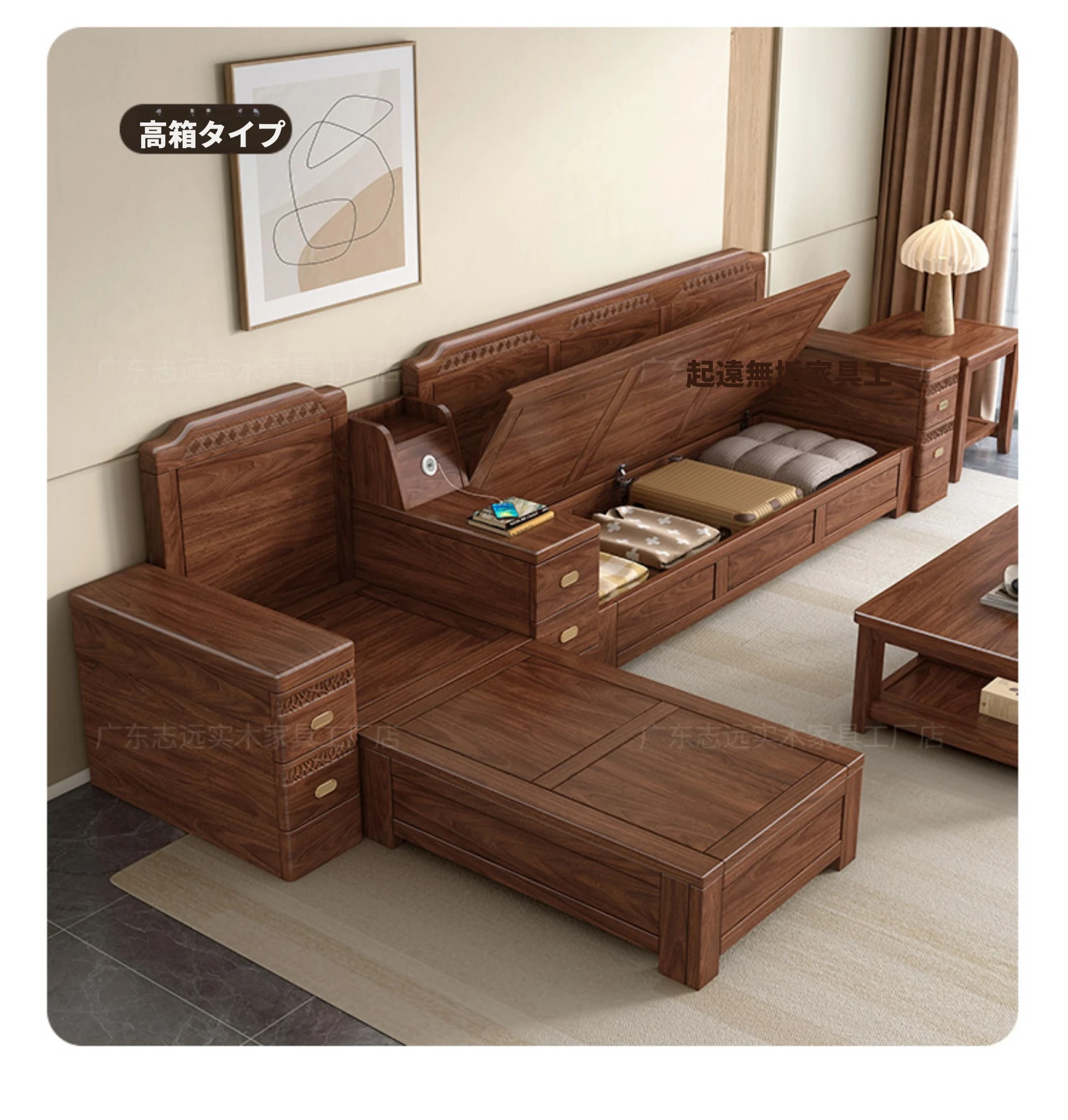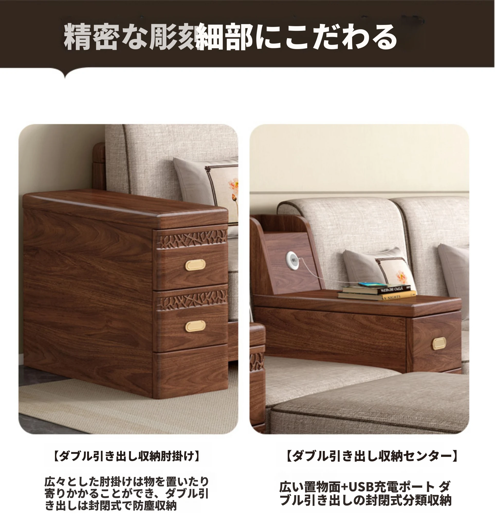 志遠家具 新中式 デザイン 厚手無垢材ソファ ブラックウォールナット製 小型・大型住宅対応 冬夏兼用 リビング用 貴妃ソファで快適空間を演出!