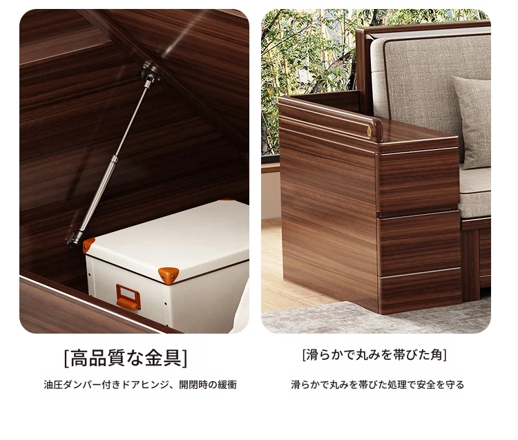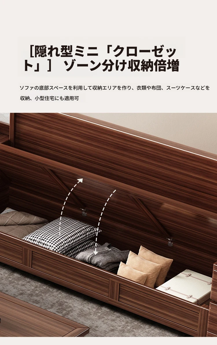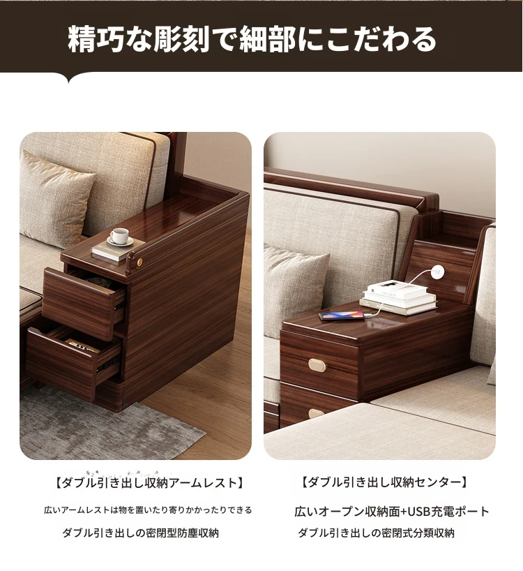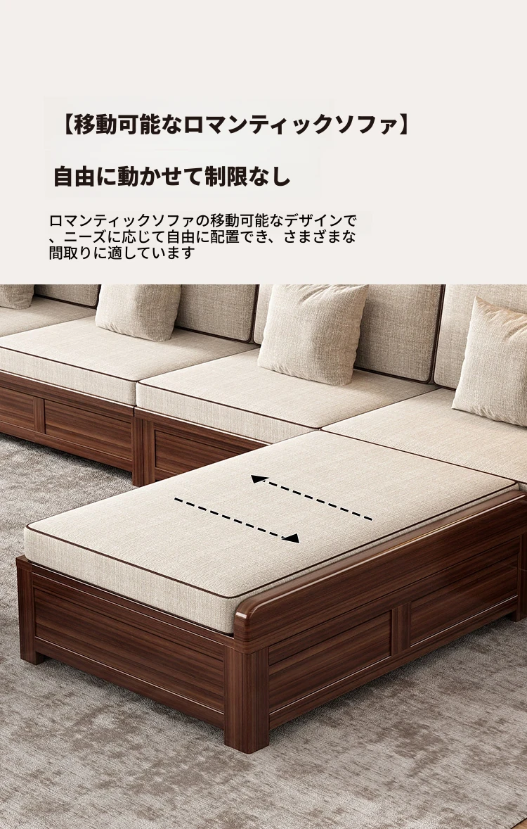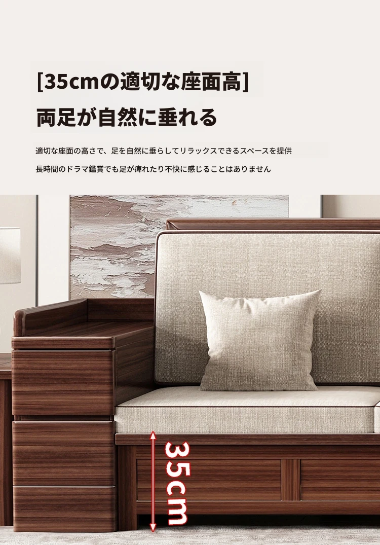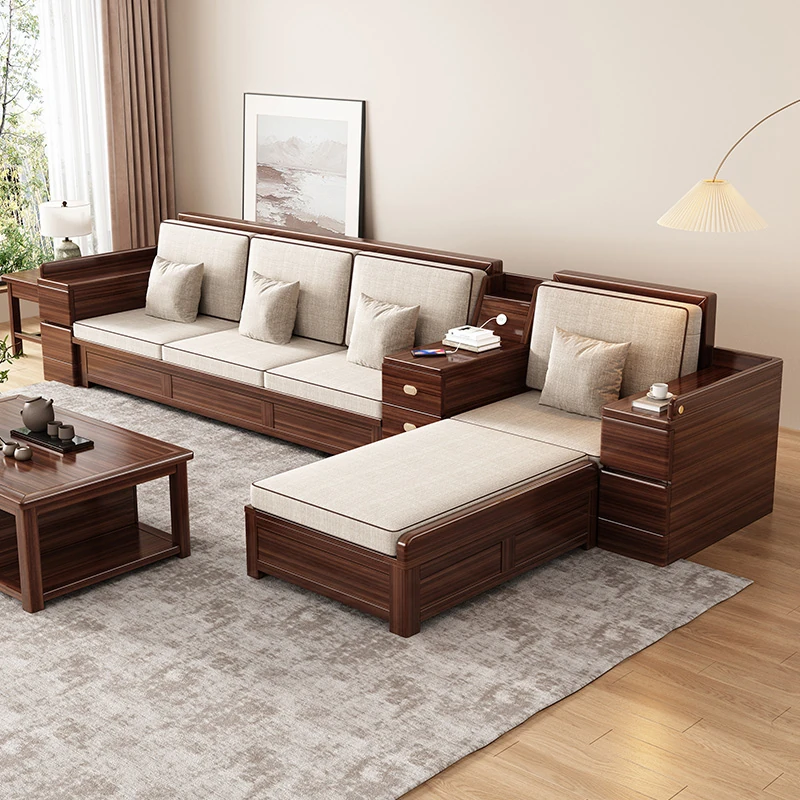 志遠家具の新中式スタイル、ブラックウォールナット製の実木ソファセット。冬は暖かく、夏は涼しい、北欧風の収納機能付きリビングソファで、快適な空間を提供します。