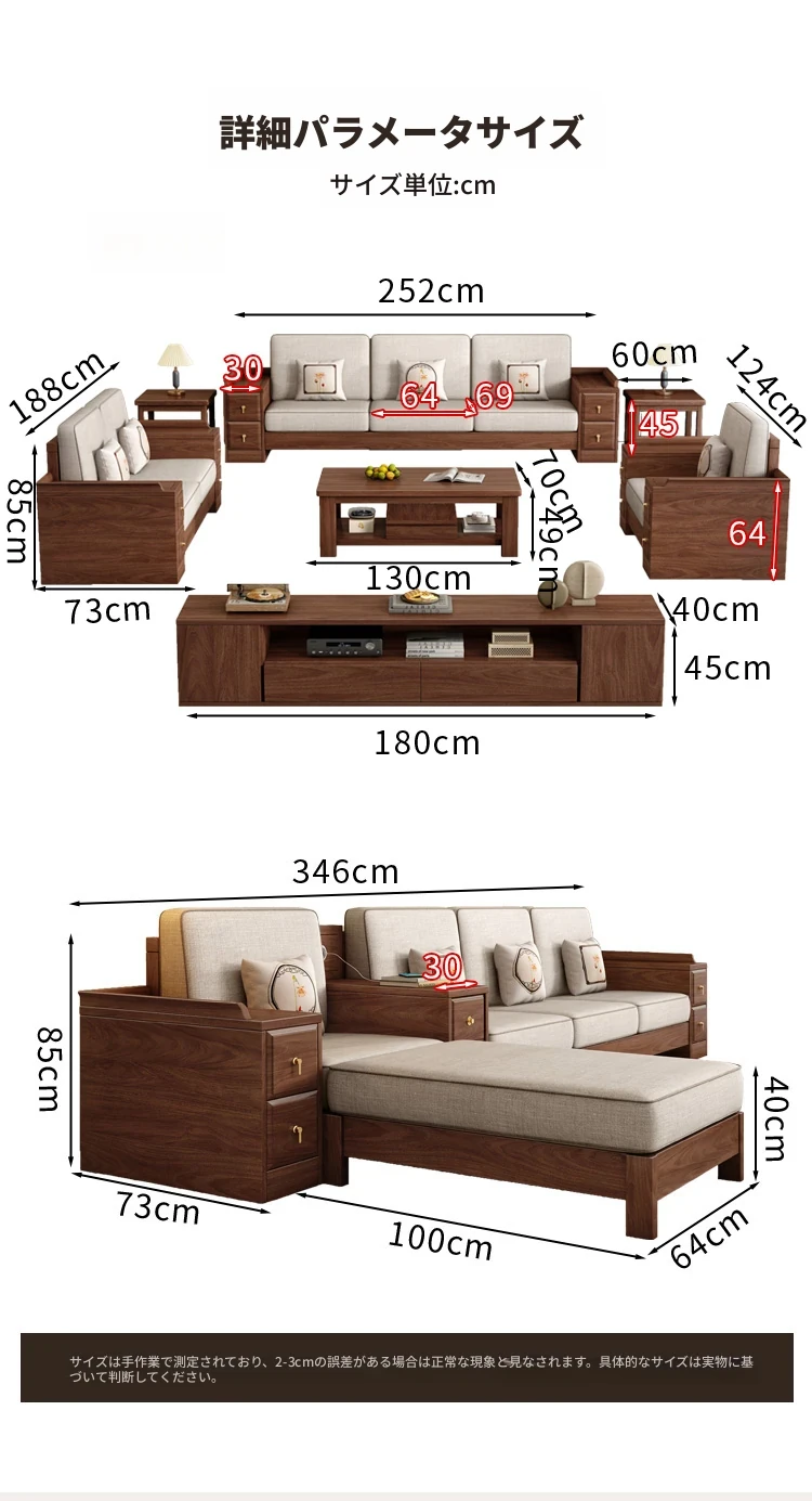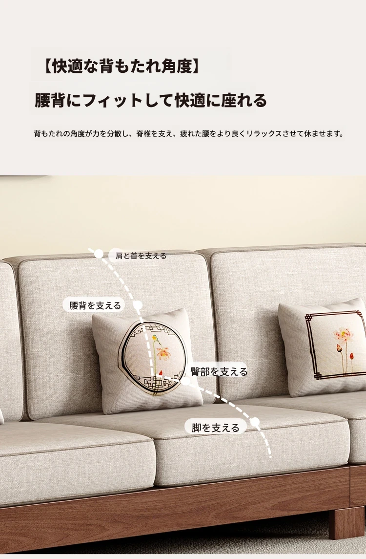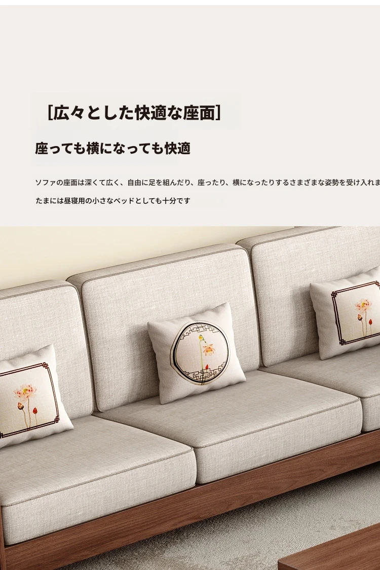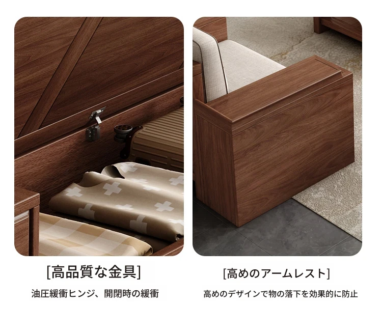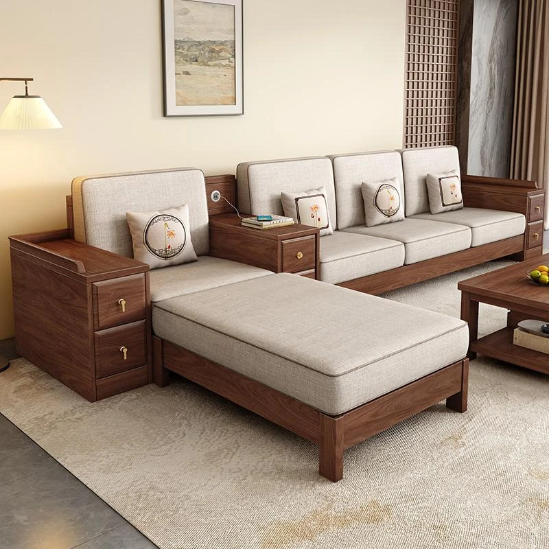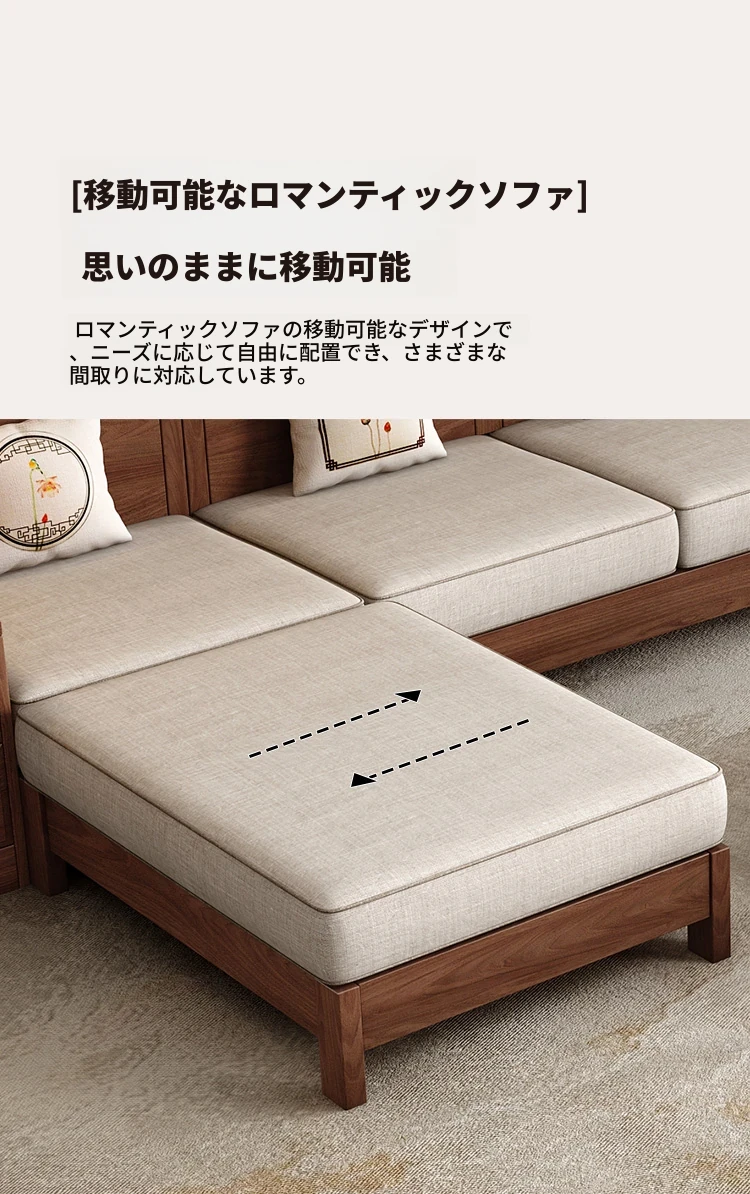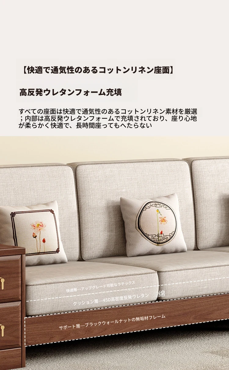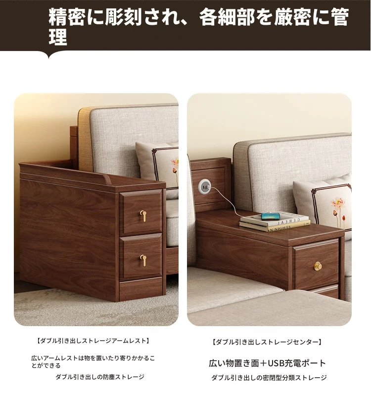 志遠家具の黒胡桃無垢材を使用した収納ソファセット - 新中式デザインで、広いお部屋にも小さなお部屋にもぴったり!収納機能付きで、スッキリとしたリビング空間を実現します。