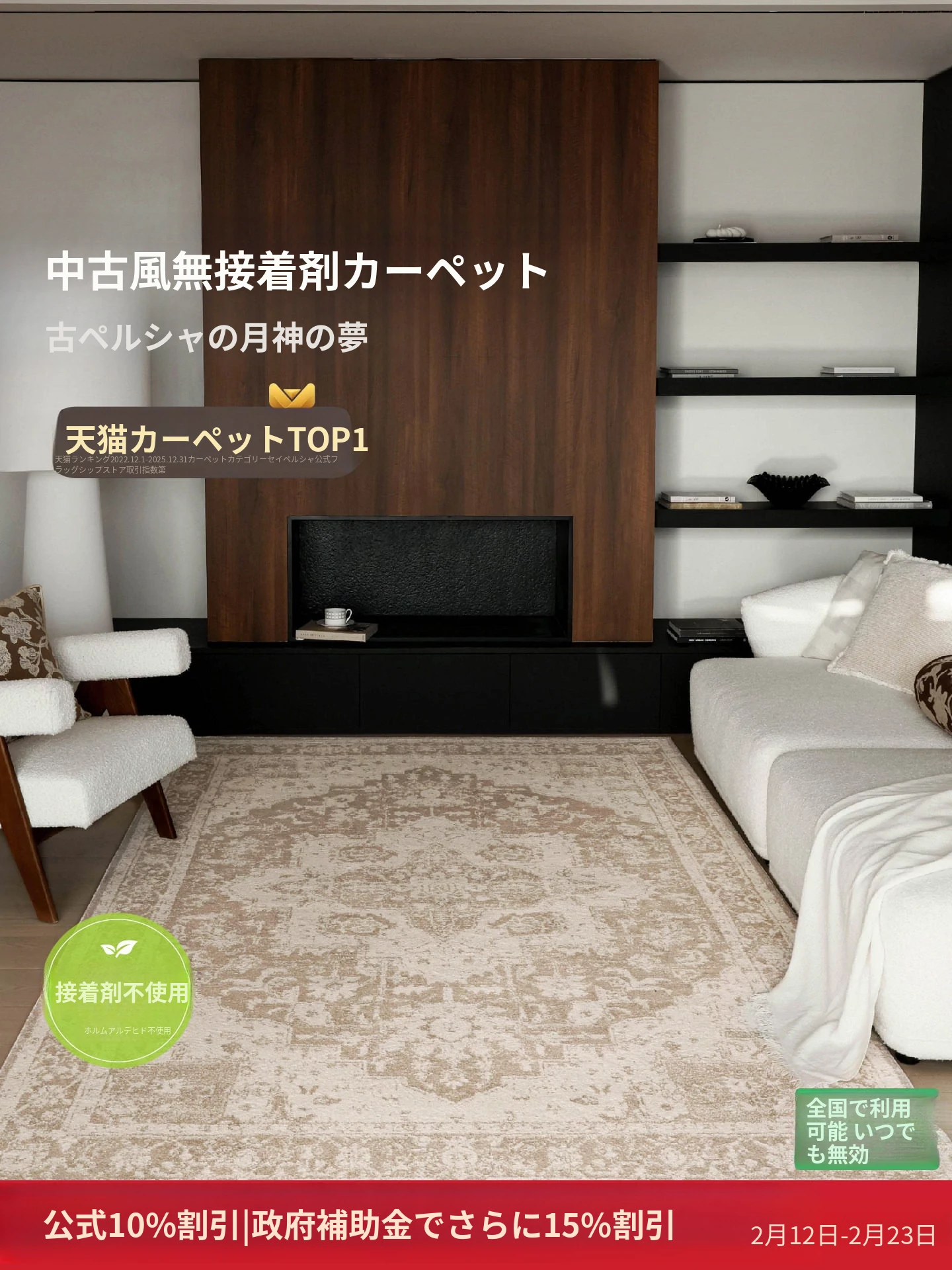 セイボス防水抗汚れカーペット|接着剤不使用・抗菌効果!オリーブツリーデザインで、寝室・リビングに高級感をプラス。青山の美宿にぴったりなアイテム!