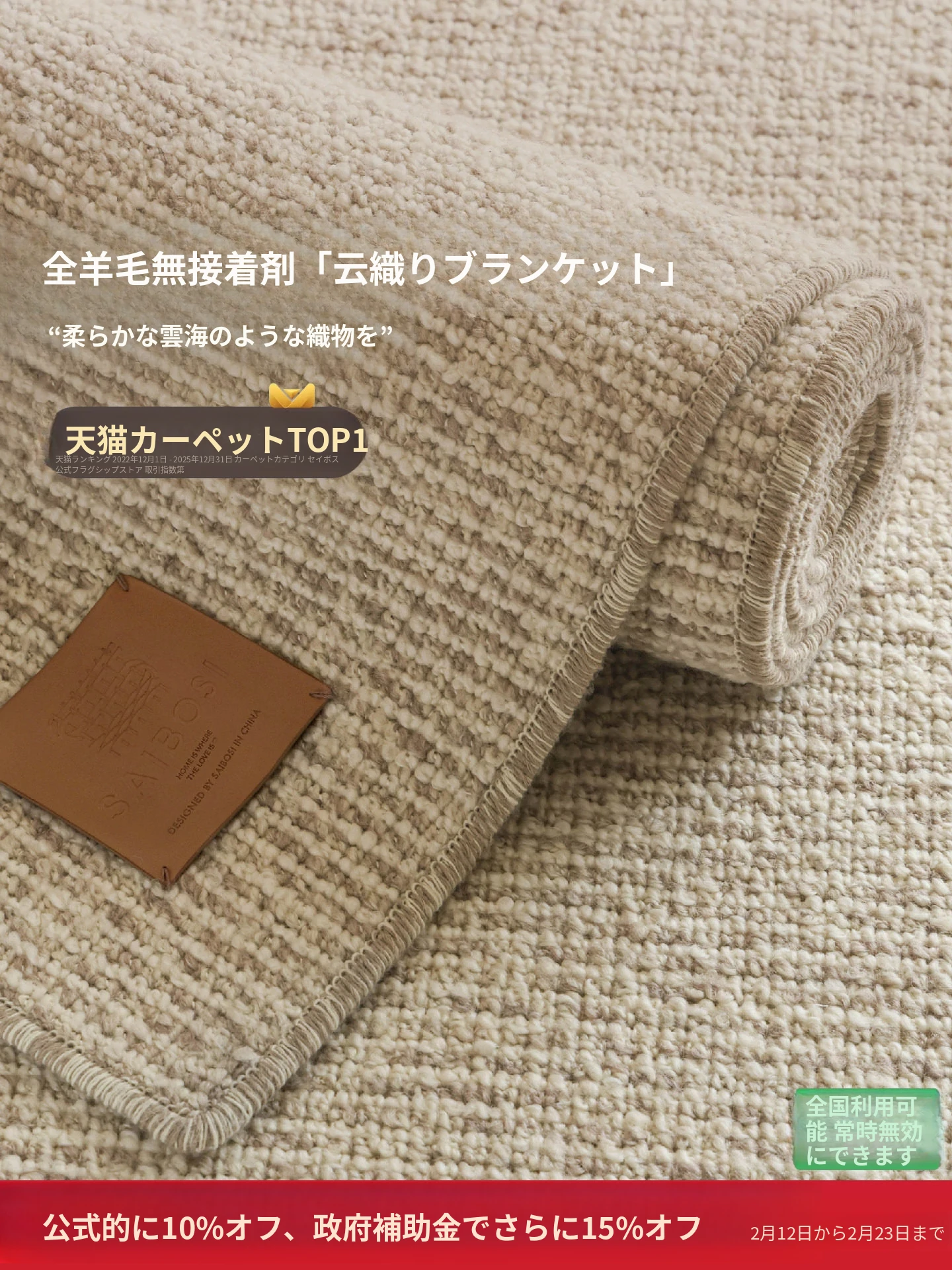 サイボス伝統工芸シリーズ 輸入全羊毛ベッドサイドカーペット 無接着剤・無フォルムアルデヒド 高級感溢れる軽やかな寝室カーペット