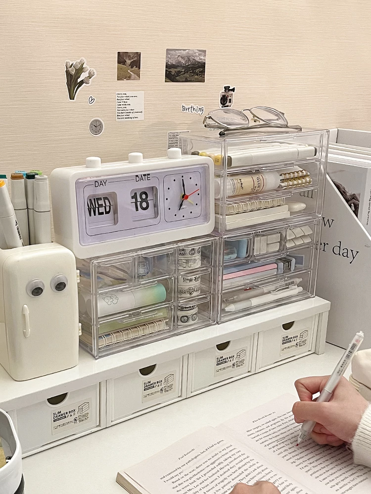 透明多層デスク収納ボックス - 引き出し式で化粧品や文房具をスッキリ整理!学生寮にもぴったりな便利な収納アイテム!