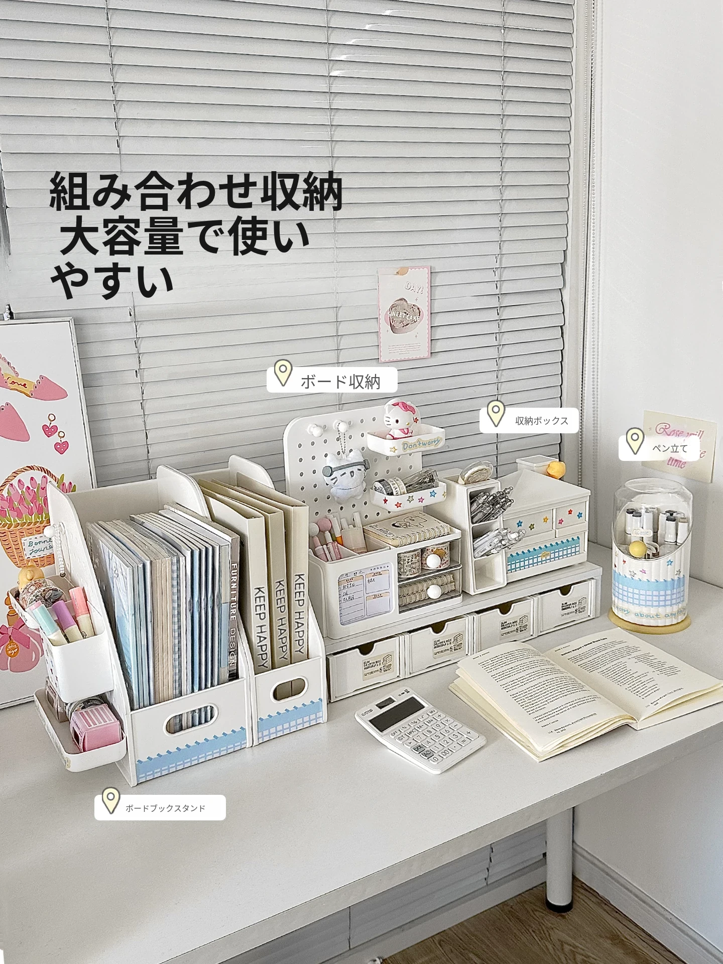 インスタ風デスク用回転収納ボックス - おしゃれな穴あきボード付き、文房具や雑貨をスッキリ整理!学生寮や書斎に最適な便利アイテム!