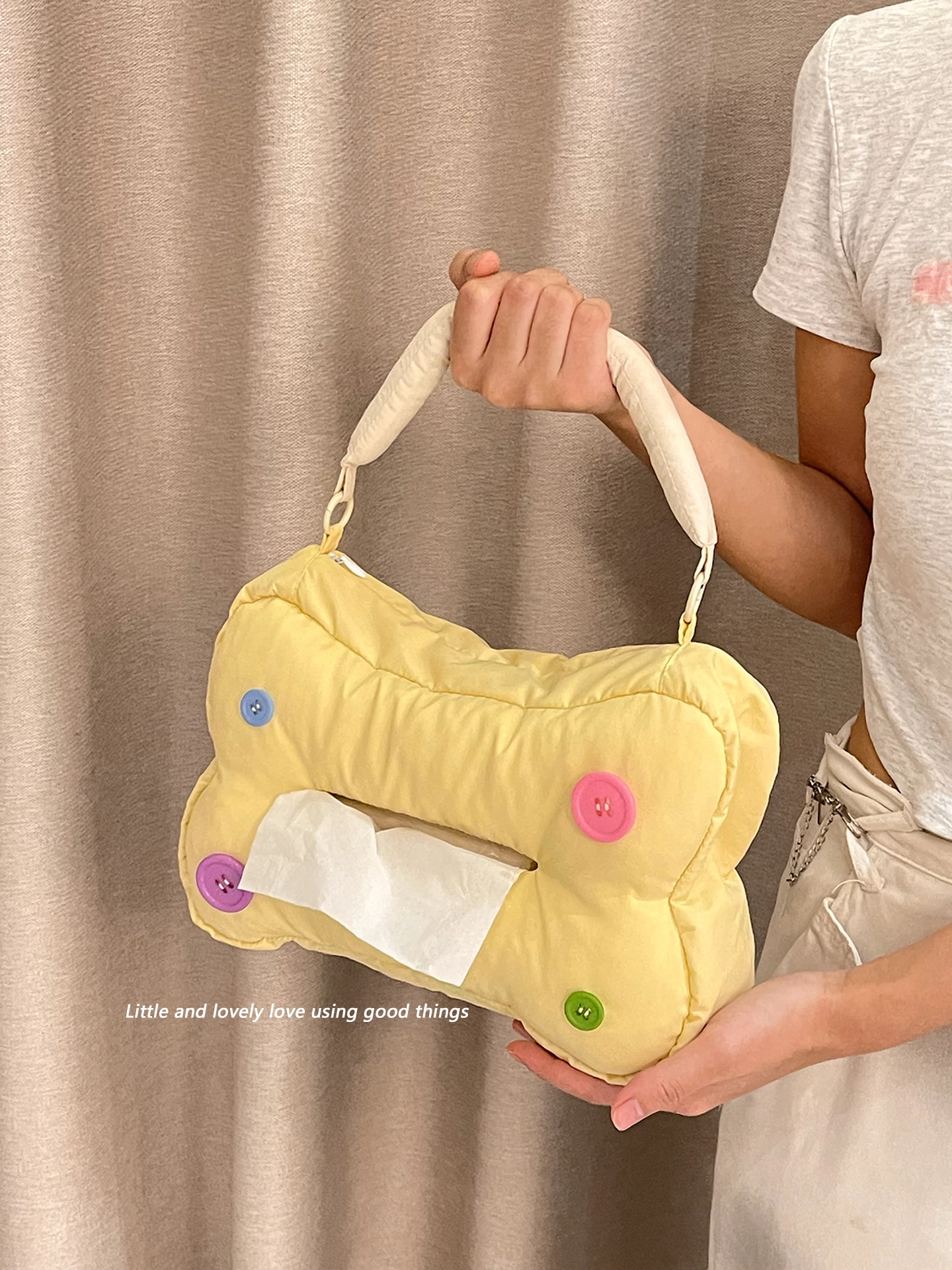 おしゃれな壁掛けティシュホルダー - ベッドサイドや車内に最適!ふわふわの布製で、洗顔タオルやティッシュをスッキリ収納。便利で可愛いデザインで、あなたの空間を彩ります!