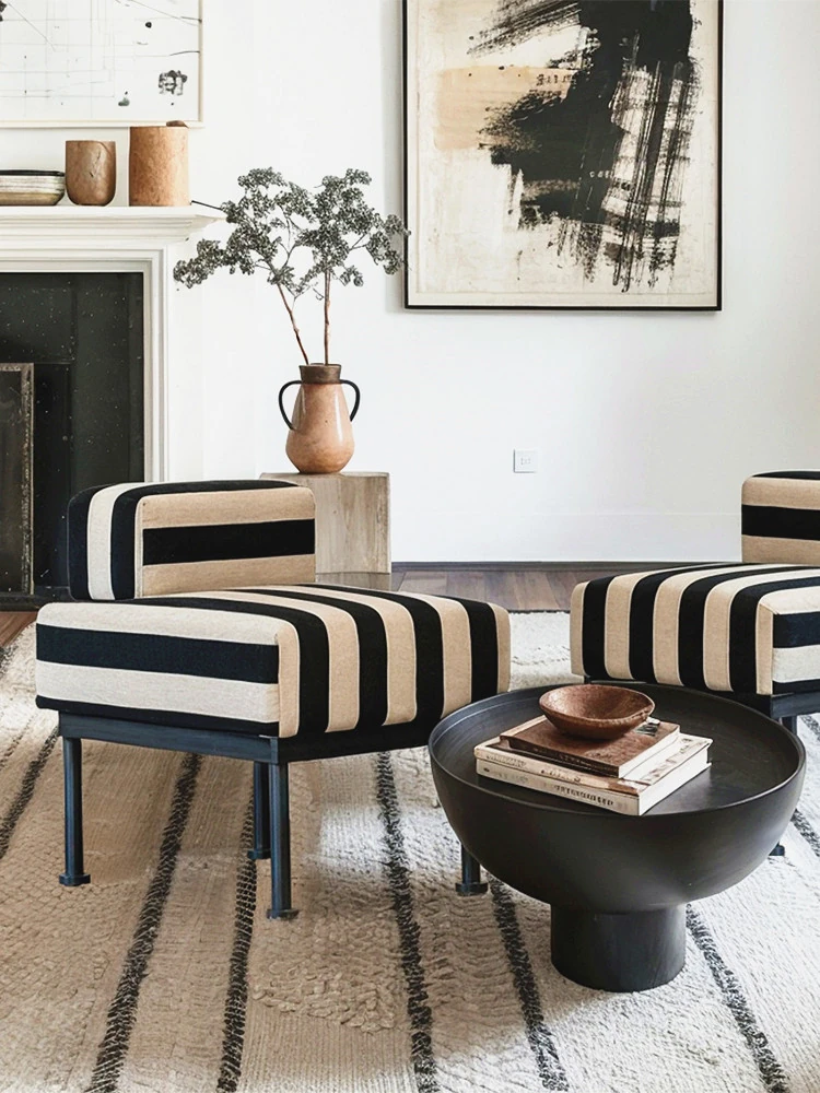 デザイナーズゼブラ柄ソファチェア・シューズベンチ・リビング&バルコニーに最適なリラックスチェア・小型住宅向けのレトロストライプドレッシングチェア
