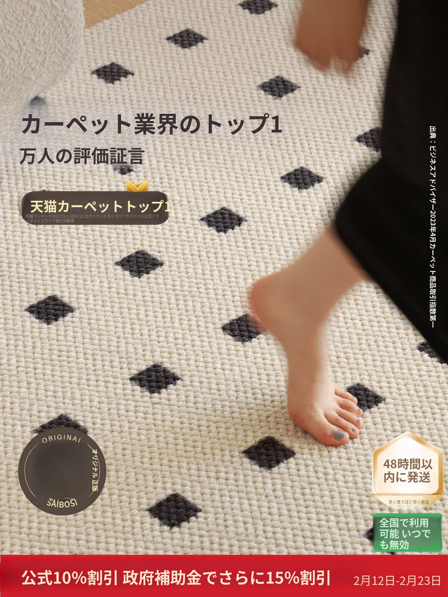 セイボス 無接着剤・無フォルムアルデヒド ベッドサイドカーペット ベッドエンドマット 抗菌・高級フレンチスタイルの青山美宿用カーペットで、健康的な快適空間を実現!