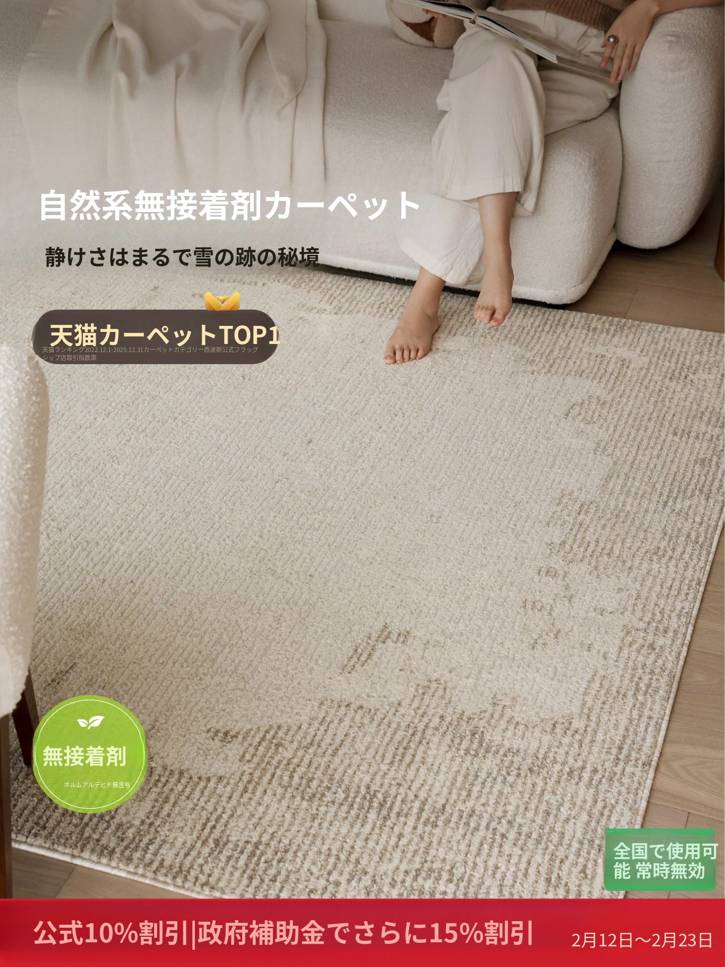 サイボスの雪のトレイル神秘的なノーグルーカーペット、ホルムアルデヒドゼロの立体浮彫りデザイン。どんなインテリアにもマッチするイタリアンクリームの軽奢スタイル、寝室やリビングに最適!
