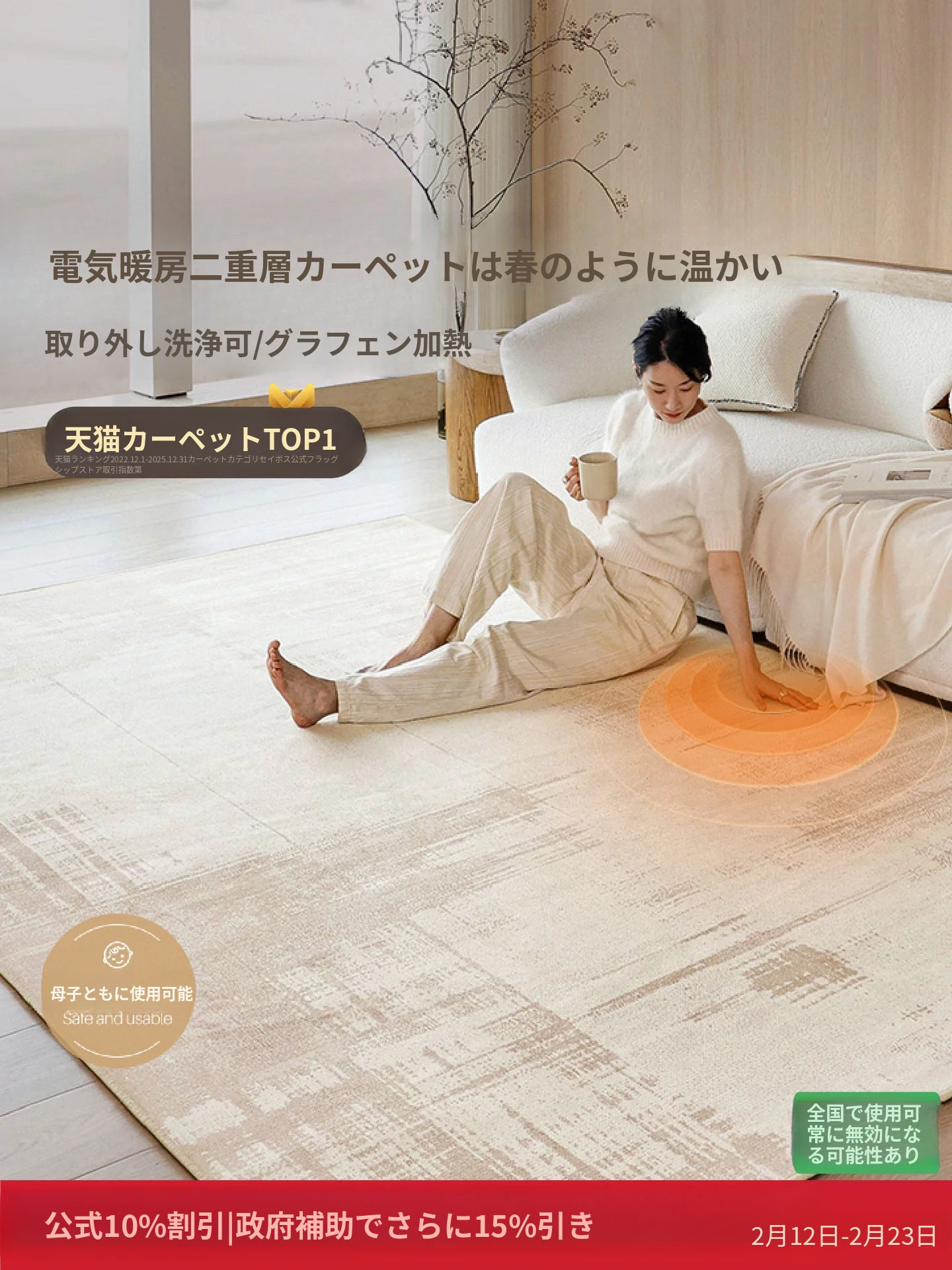 サイボス 暖かい山の取り外し可能な洗える電気暖房二重層カーペット 高級グラフェン製 洗濯機対応 ヒーティングマット 寝室・リビングルームに最適!