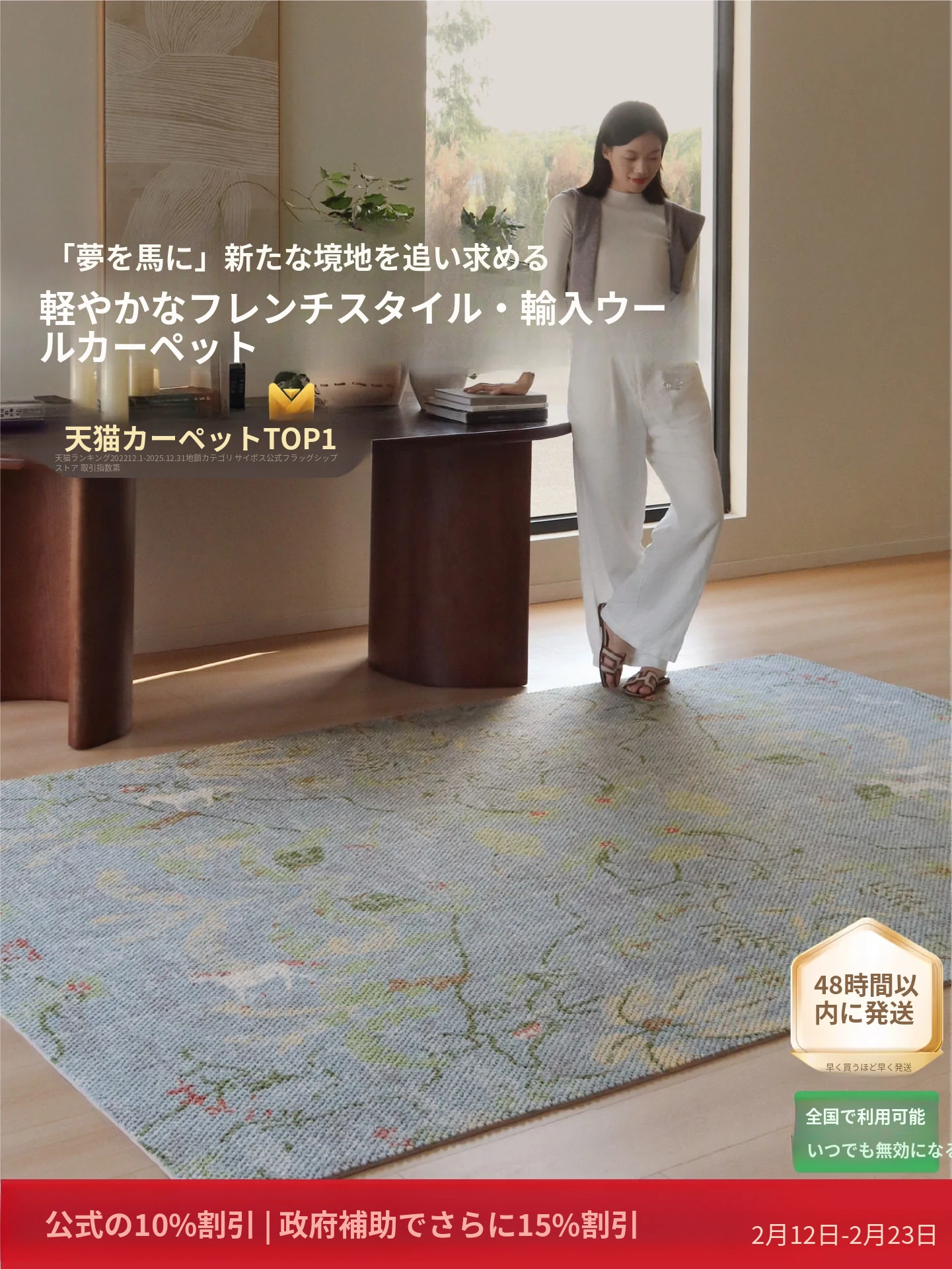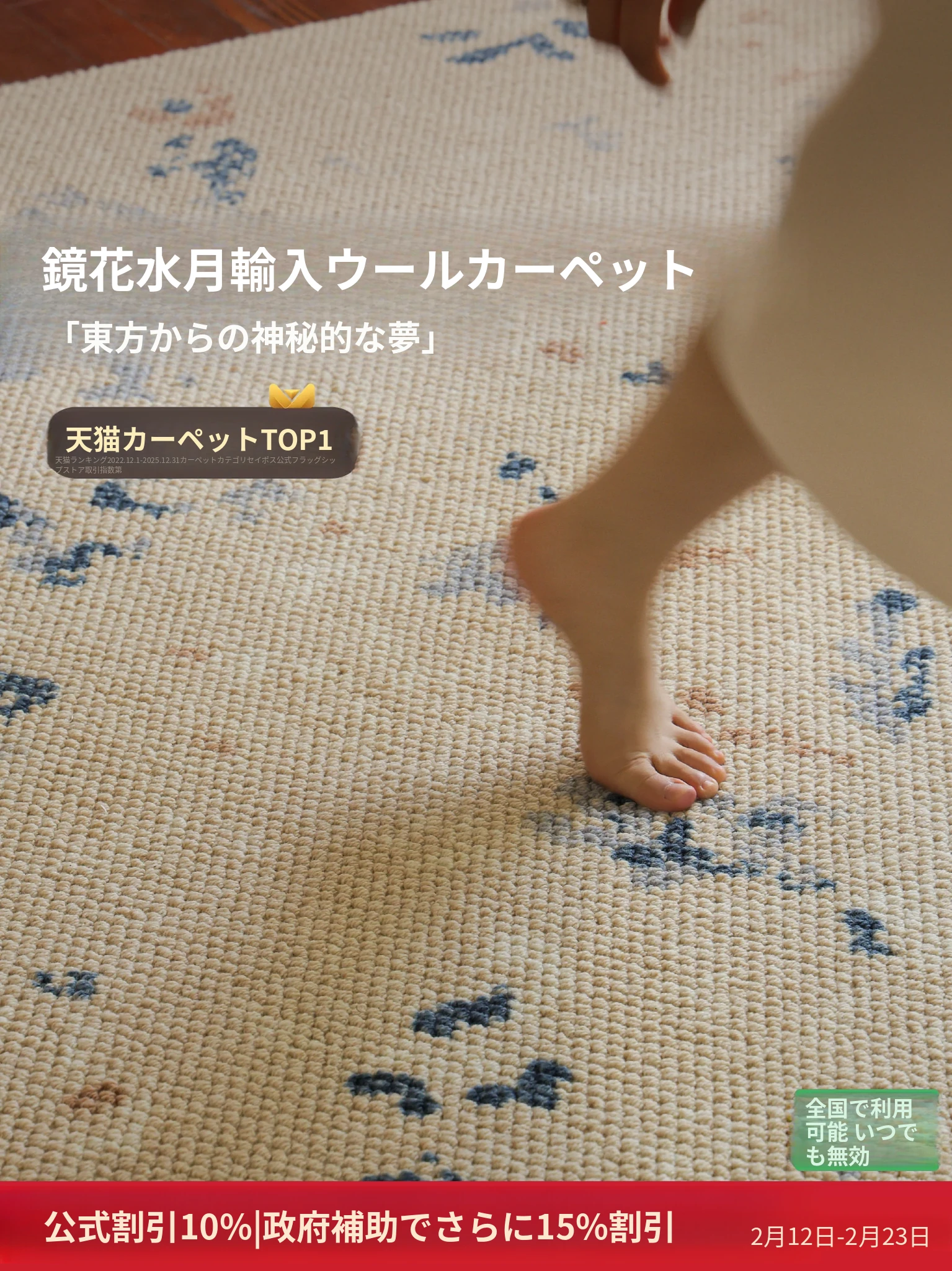 サイボス青玉海棠インポートウールベッドサイドマット 新中式スタイルの窓辺・ベッドフットカーペット 軽やかなラグジュアリー感を演出する高級アイテム