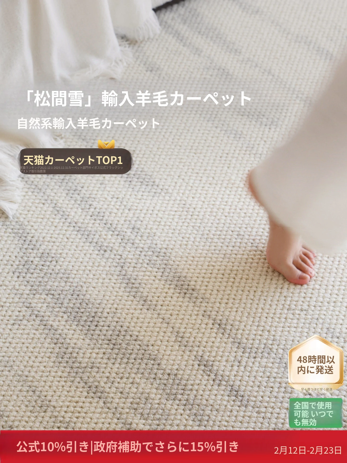 セイボス松間雪 ニュージーランド輸入ウールカーペット リビングルームに最適なイタリアンミニマリズム 軽やかなラグジュアリー感 ソファや寝室にぴったり