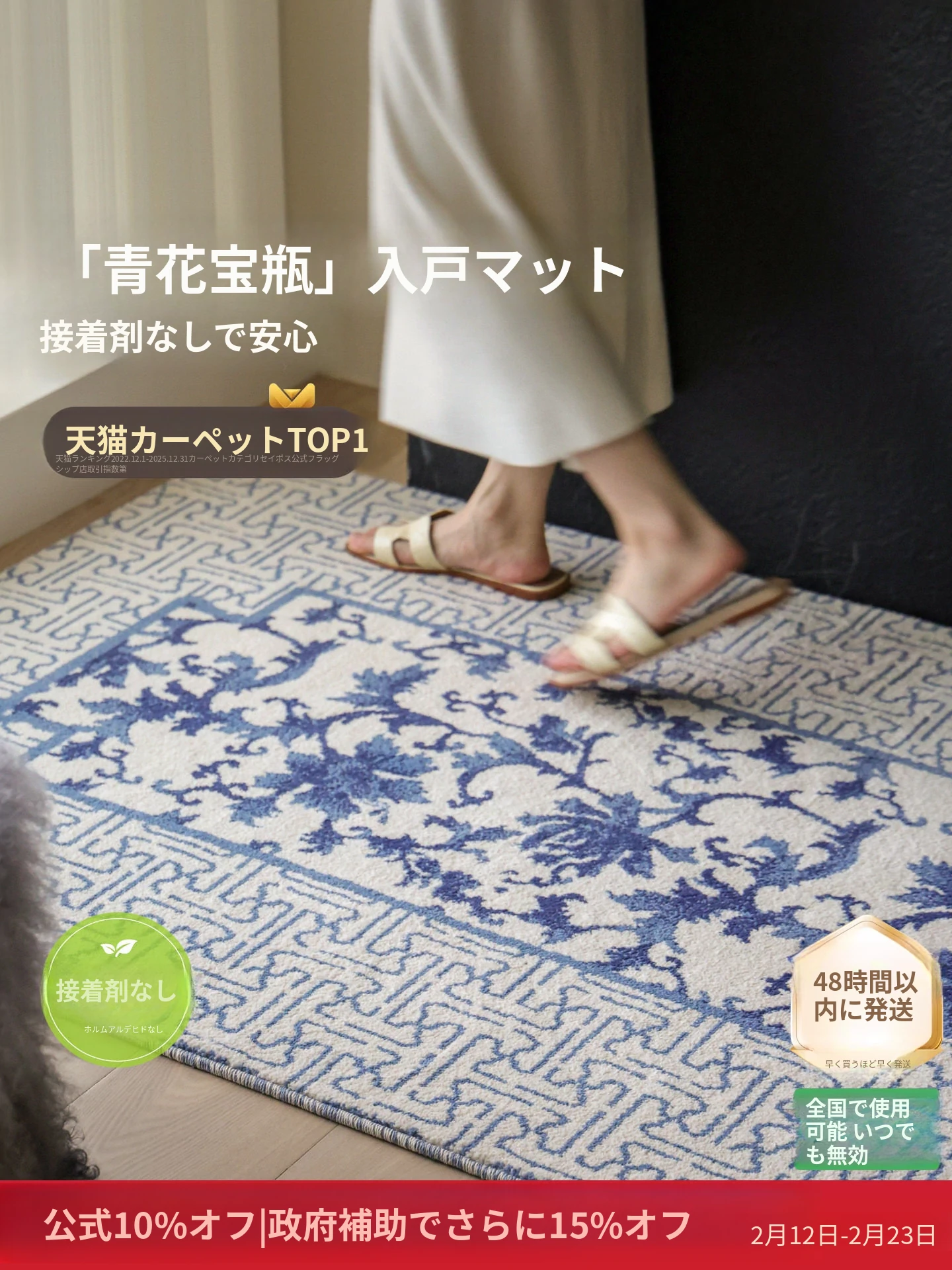 セイボス・オリエンタル青花瓶|高級感あふれる無接着剤の玄関マット、平安をもたらす入室用カーペット。おしゃれで快適な足元を演出!