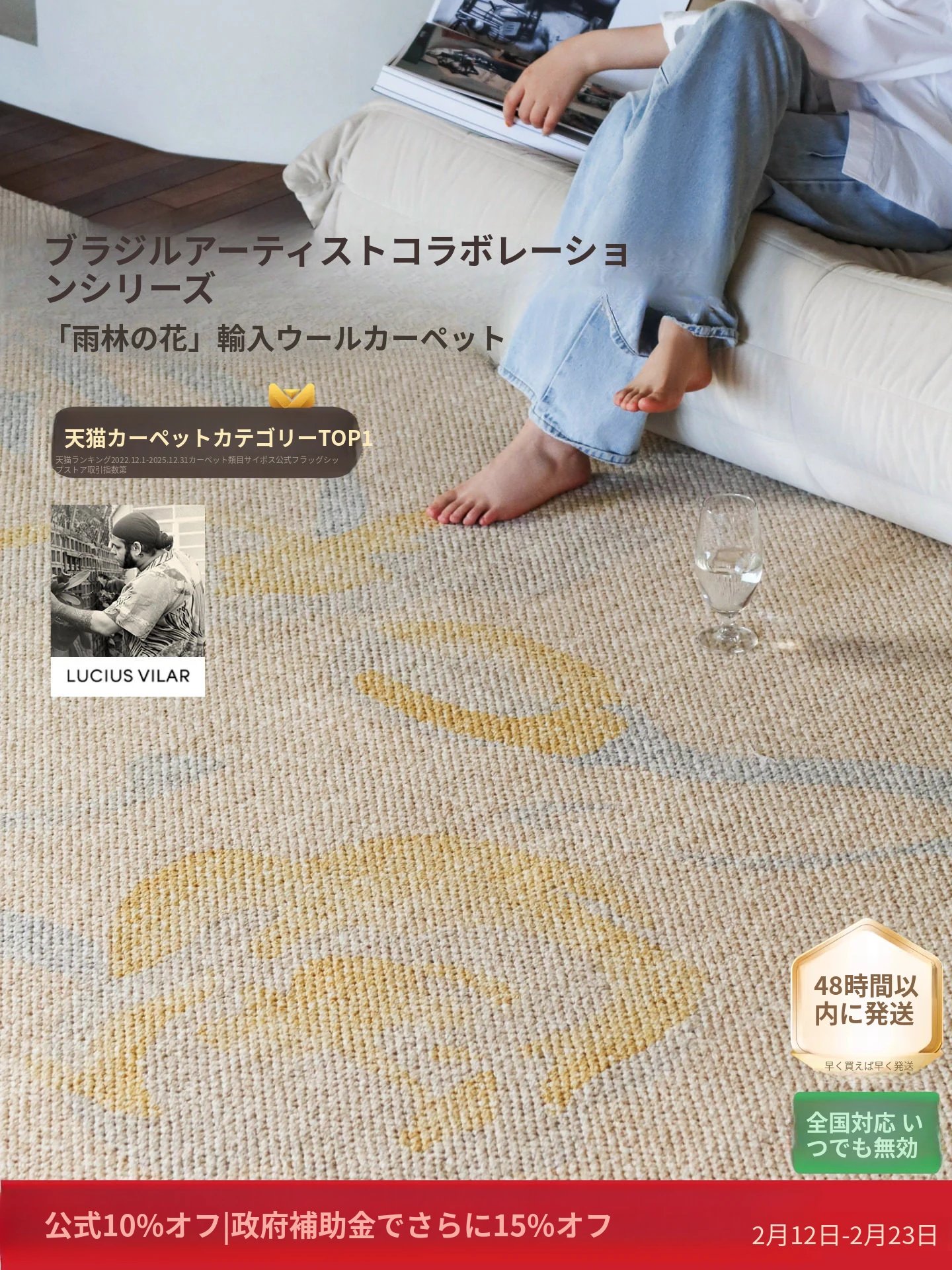 サイボス×ブラジルアーティストコラボの高級感あふれるインポートウールカーペット - リビングや寝室にぴったりのラグジュアリーな雰囲気を演出!