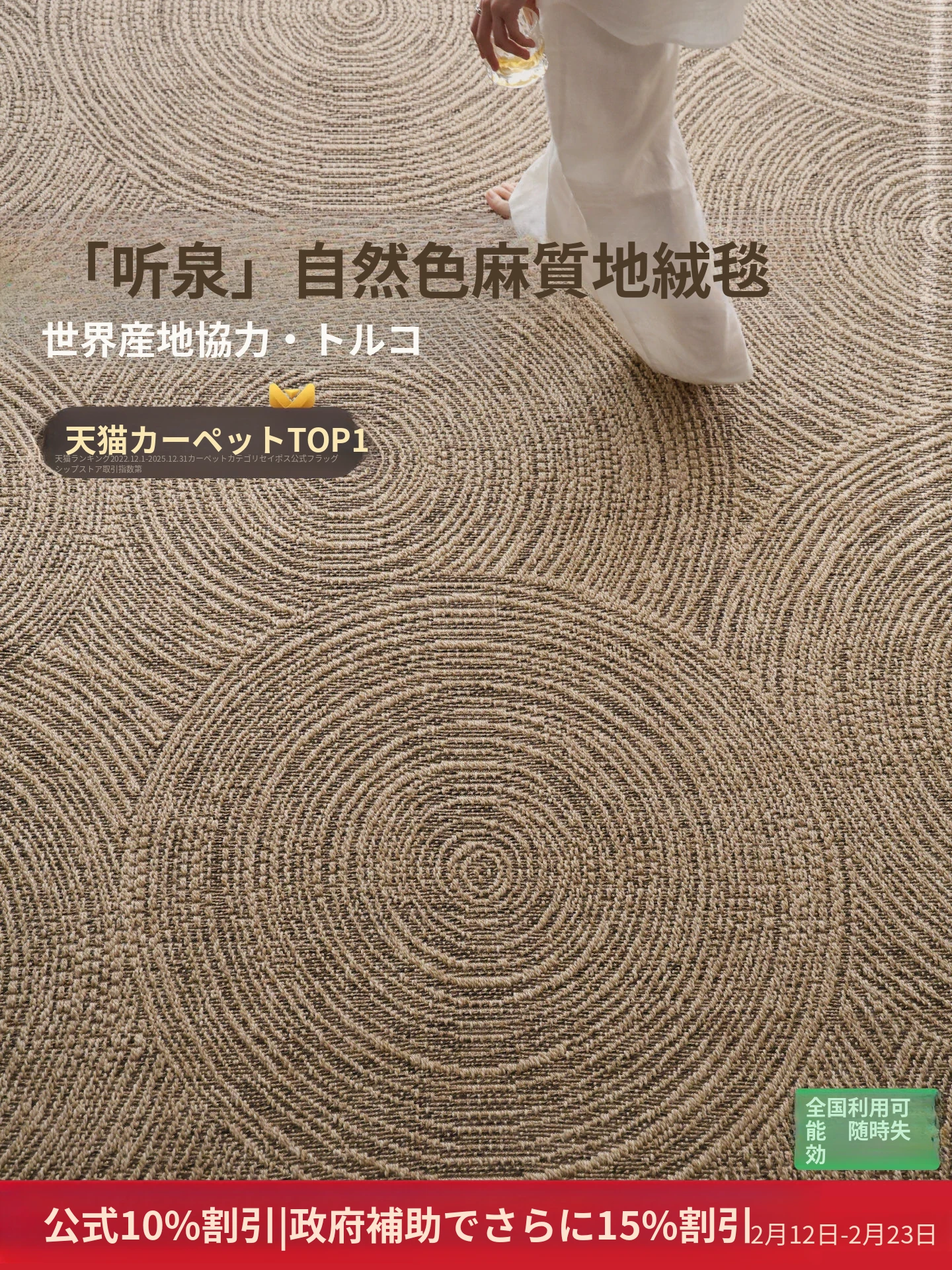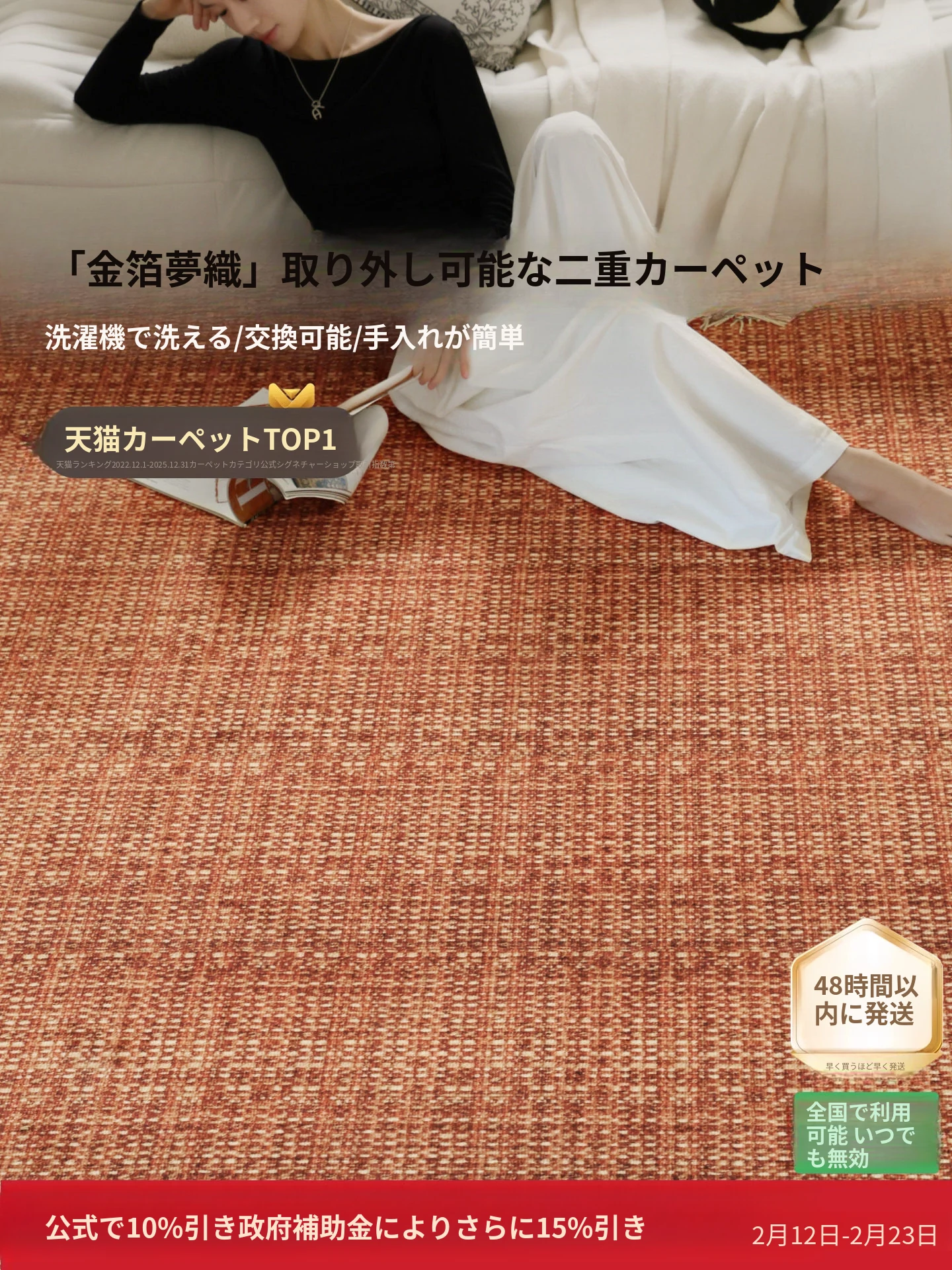 セイボスの光を求める無接着剤カーペット、防水・猫の爪防止機能付き。アンティーク風のイタリアンラグで、リビングや寝室に上質な高級感をプラス!