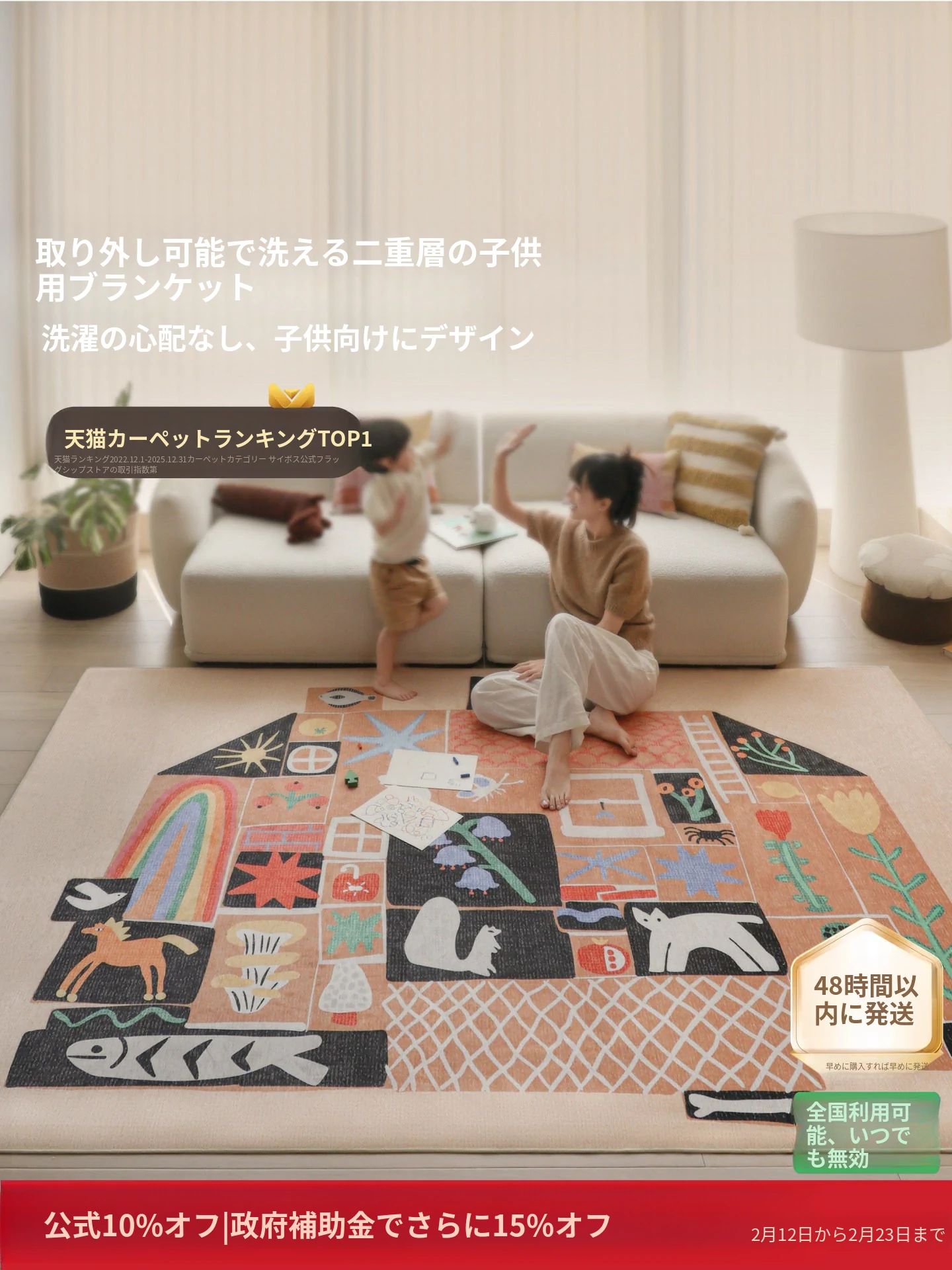 セイボスのフライングハウス奇旅!洗える2層構造のカーペット、子供部屋にもぴったりなクッションマット。軽やかで高級感溢れるデザイン、リビングにも最適!