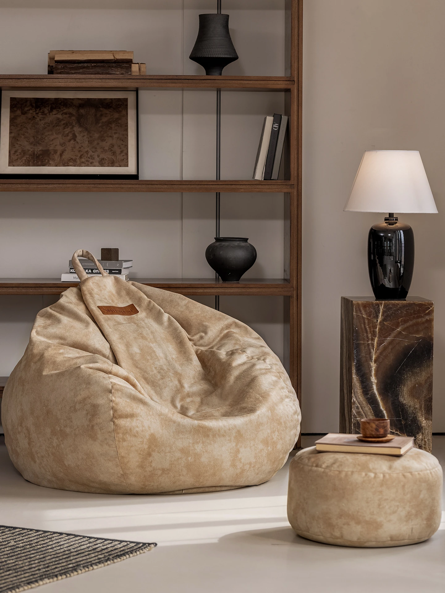 イタリアンミニマルレトロ本革ソファ - 高級オイルワックス牛革製のビーンバッグソファ。クラシックなヴィラのリビングやシガーバーに最適!洗練されたデザインで、極上のくつろぎを提供します。