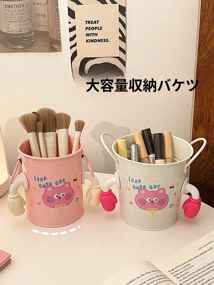 可愛いメイクブラシ収納バケツ!アイシャドウ、リップ、眉ペンもスッキリ整理。おしゃれなデザインで、寮やオフィスのデスクを華やかに彩ります!高品質なアイアン製で、耐久性も抜群!