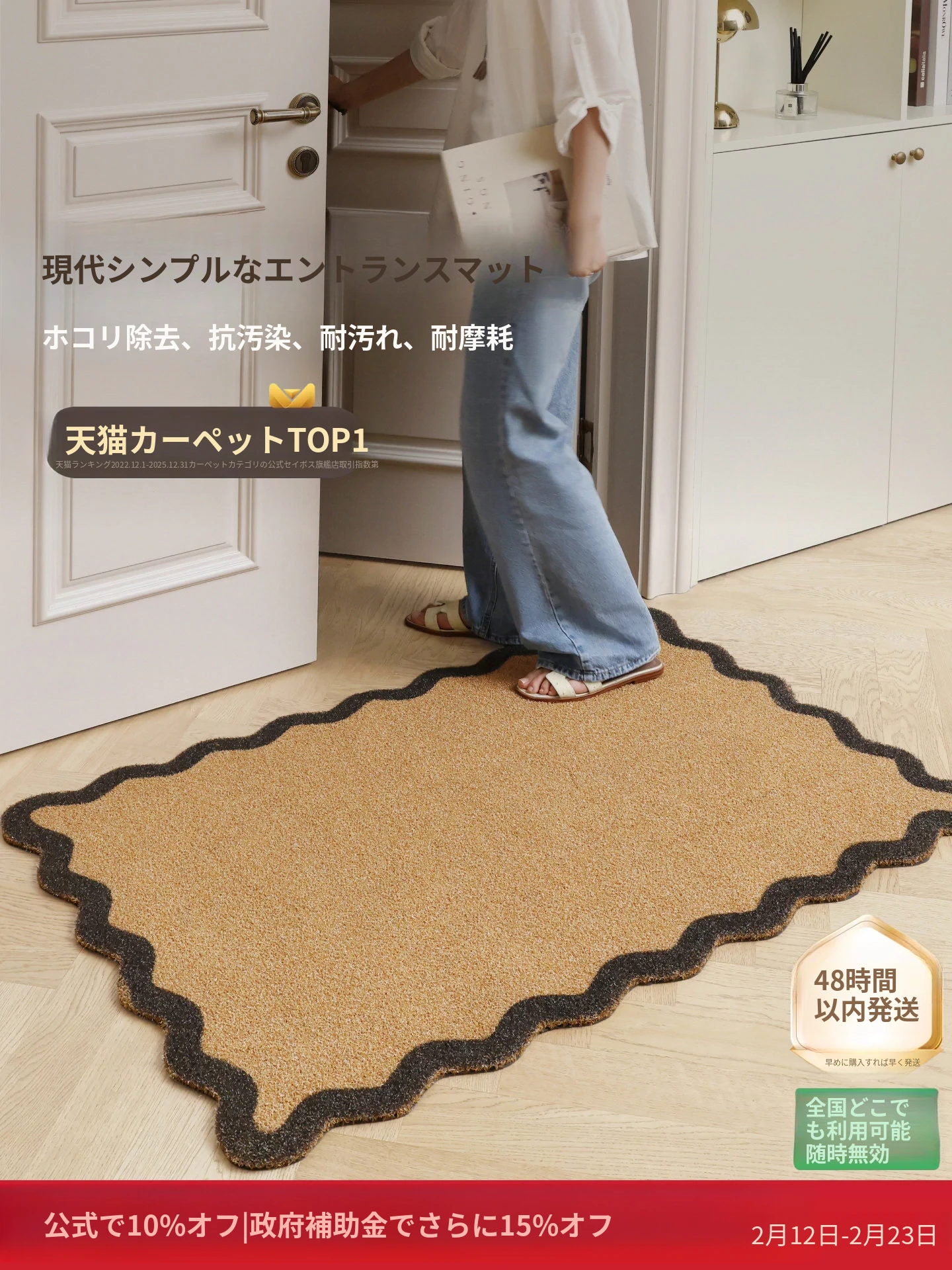 サイボス風ココナッツブラウン玄関マット - 汚れに強く滑り止め機能付き!家庭用に最適なカット可能なラグ、洗濯も簡単でいつでも清潔を保てます。あなたの家の入口をおしゃれに彩りましょう!