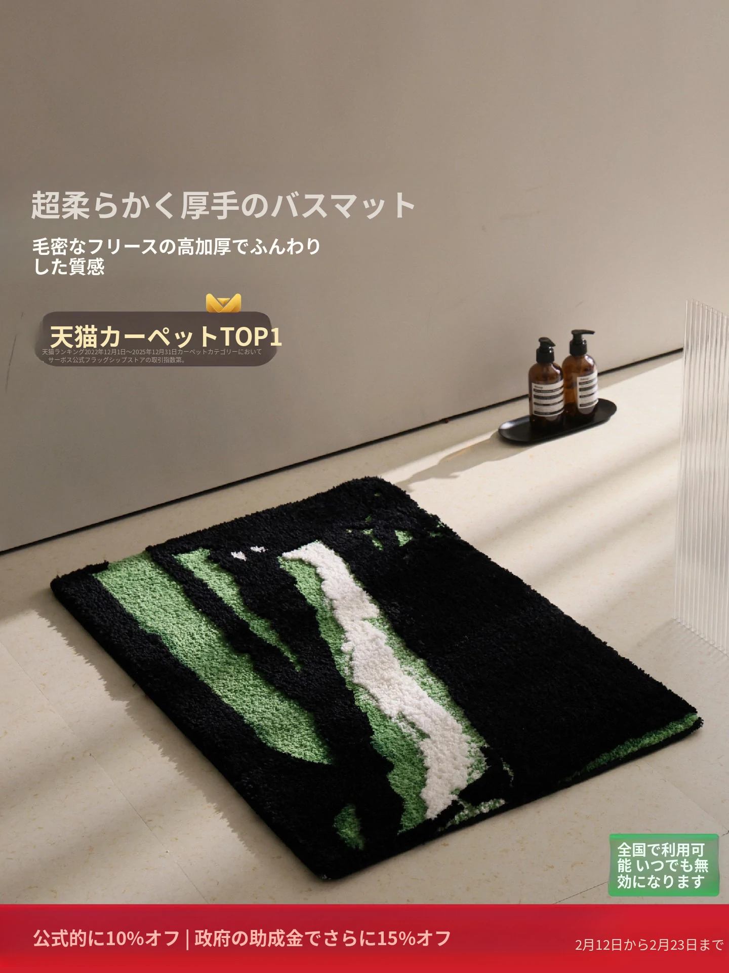 セイボスの自然風バスルームマット - 厚手で吸水性抜群、滑り止め付きの家庭用カーペット!青山の美しい宿にぴったりなデザインで、快適なバスタイムを実現します。