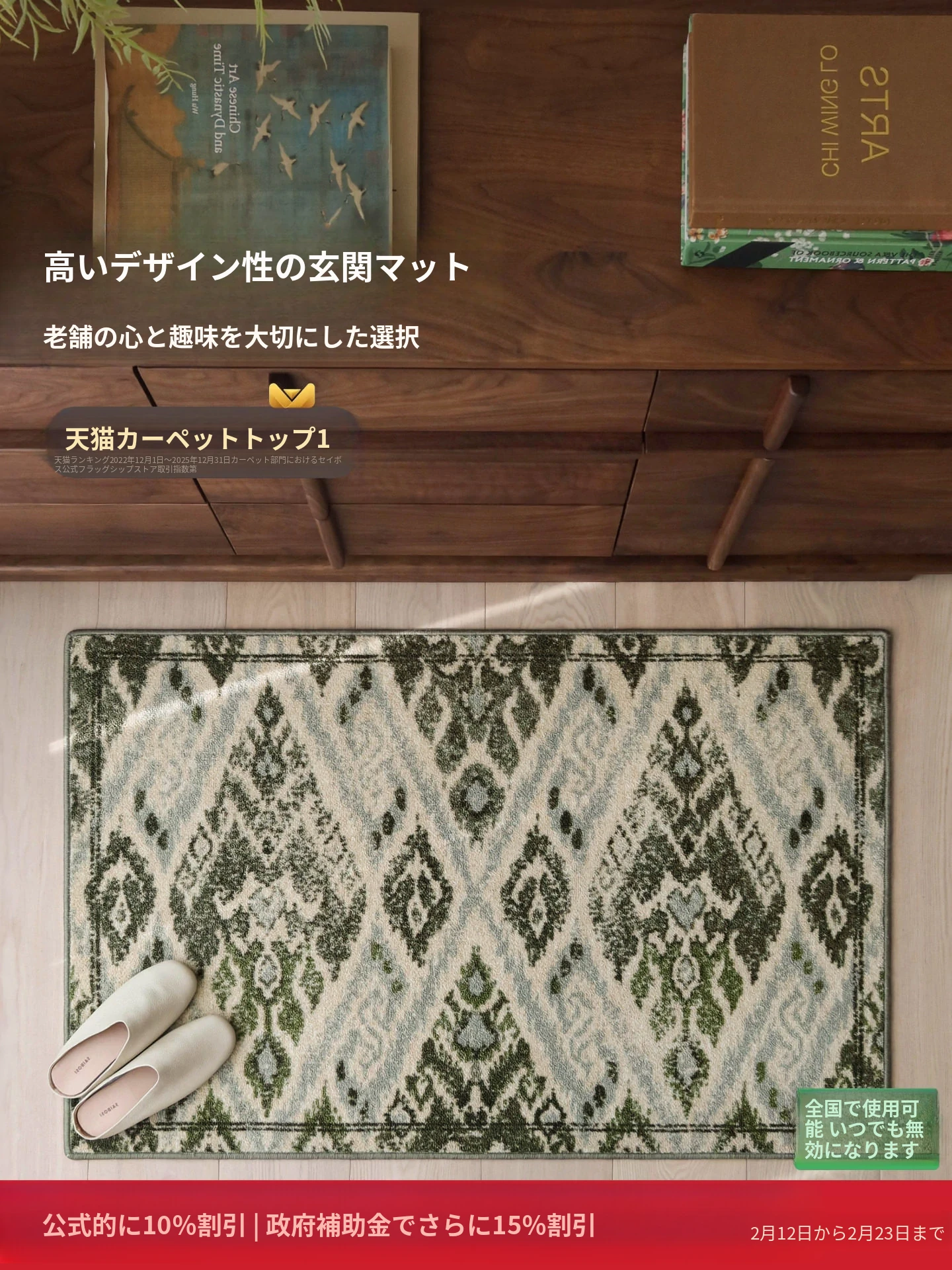 サイボスのクラシックファッション玄関マット|高級感あふれる中古のラグ|滑り止め加工で安心・汚れに強いデザイン|おしゃれな入室を演出する必須アイテム!