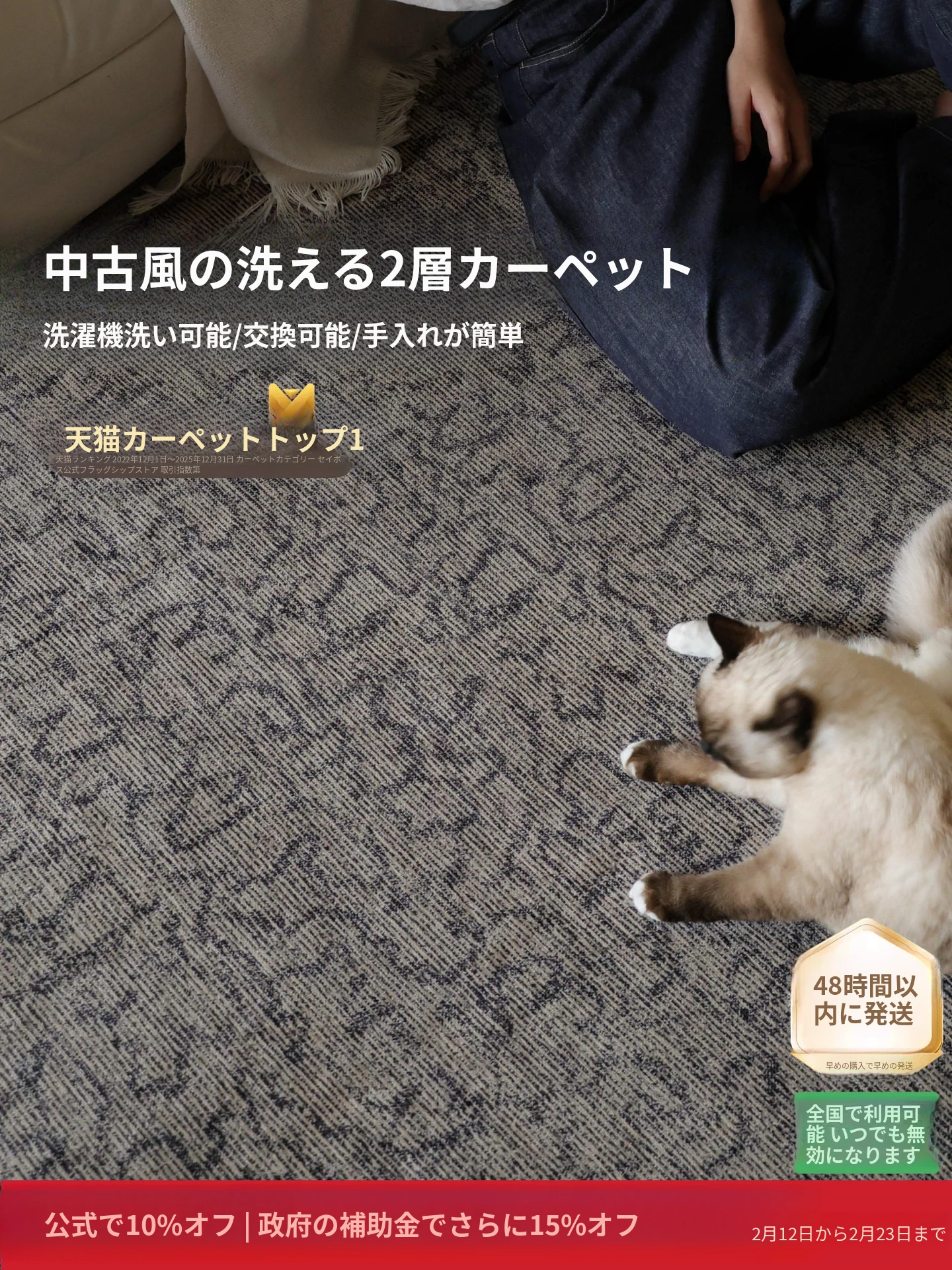 セイボスの取り外し可能なダブルレイヤー洗えるラグ、現代的でラグジュアリーな雰囲気を演出。リビングやソファ、寝室にぴったりの上質なアイテムです。