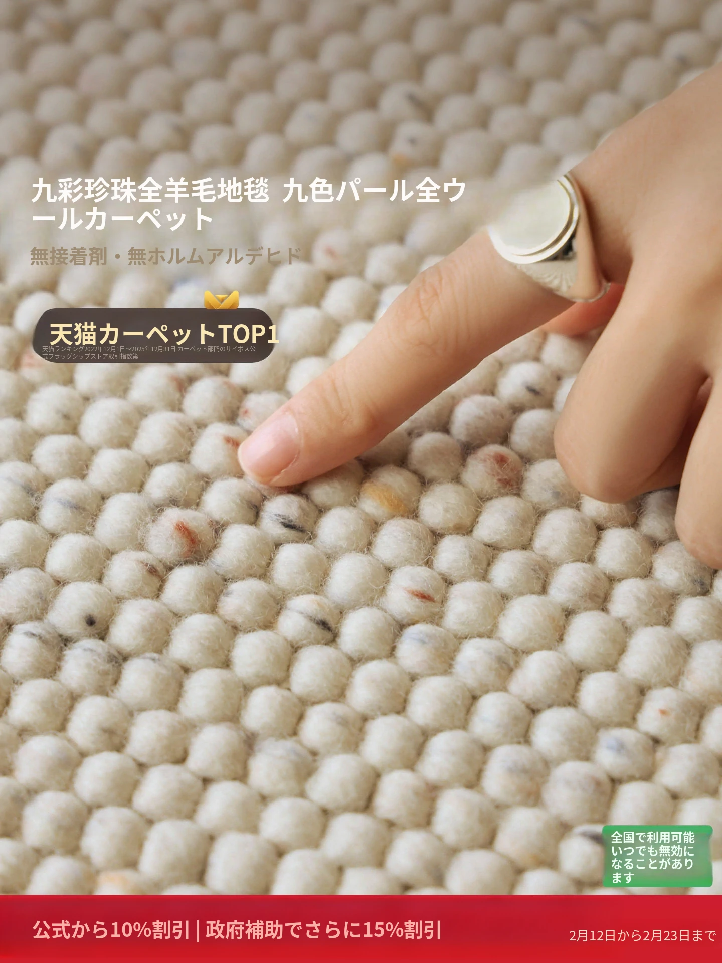 サイボス九色パール輸入全羊毛ノングルー織りラグカーペット - リビングルームにぴったりな軽やかさと高級感、ソファや寝室にも最適!