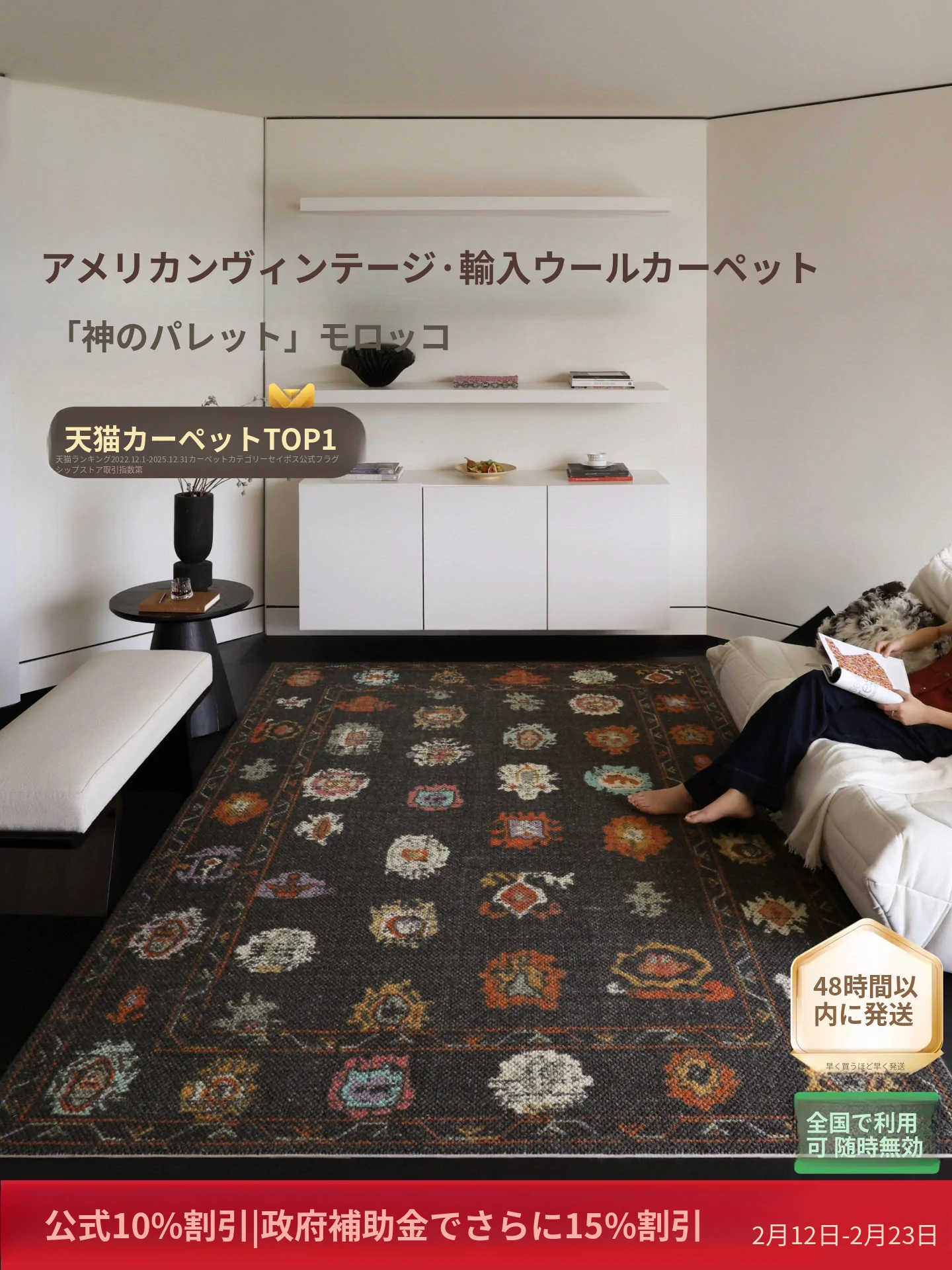 サイボス輸入の全羊毛無接着剤ラグ、パールスプリングスタイルのフレンチラグジュアリー、高級リビング・寝室にぴったりな青山の美しい宿。