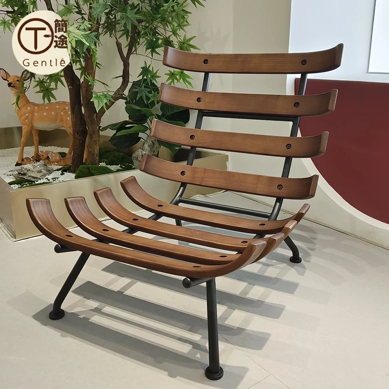イタリアンスタイルのシンプルな人間工学ソファチェア、バルコニーにぴったりなレトロなクルミ無垢材使用!現代的なリラックスデザインのデザイナーチェアで、あなたの空間に洗練された雰囲気をプラス!
