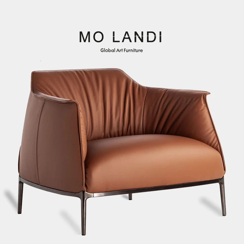 軽やかさと贅沢感を兼ね備えたイタリアンスタイルのシングルソファ!北欧風のリラックスチェア、ナパレザー使用のモダンミニマリストデザイン。商談やリビングに最適な一品です!