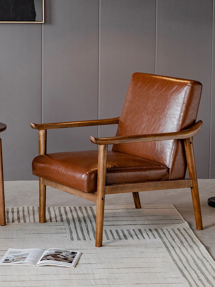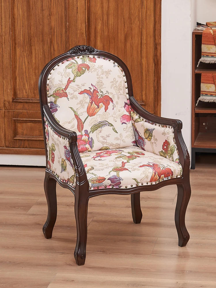 アメリカンスタイルの無垢材製トラチェア!欧州風レトロデザインの一人掛けソファチェア。寝室やバルコニー、ホテルのリラックス空間にぴったりの家庭用書斎椅子。快適さとスタイルを両立させた逸品です!
