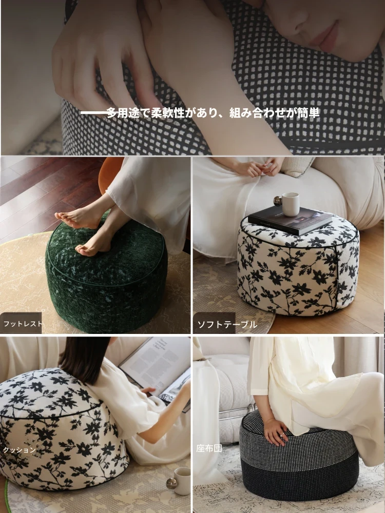 セイボス多機能クッション、リビング・寝室・バルコニーに最適!リラックスできる豆袋ソファ、和室にもぴったり。青山の美しい宿で心地よいひとときをお楽しみください。