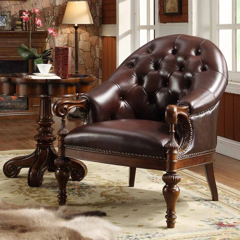 アメリカンスタイルの本革ウルフチェア - 高級感あふれる別荘向け一人掛けソファ、リビングルームにぴったりのラグジュアリーなデザイン!快適な休息を提供する、理想的な接待椅子です。