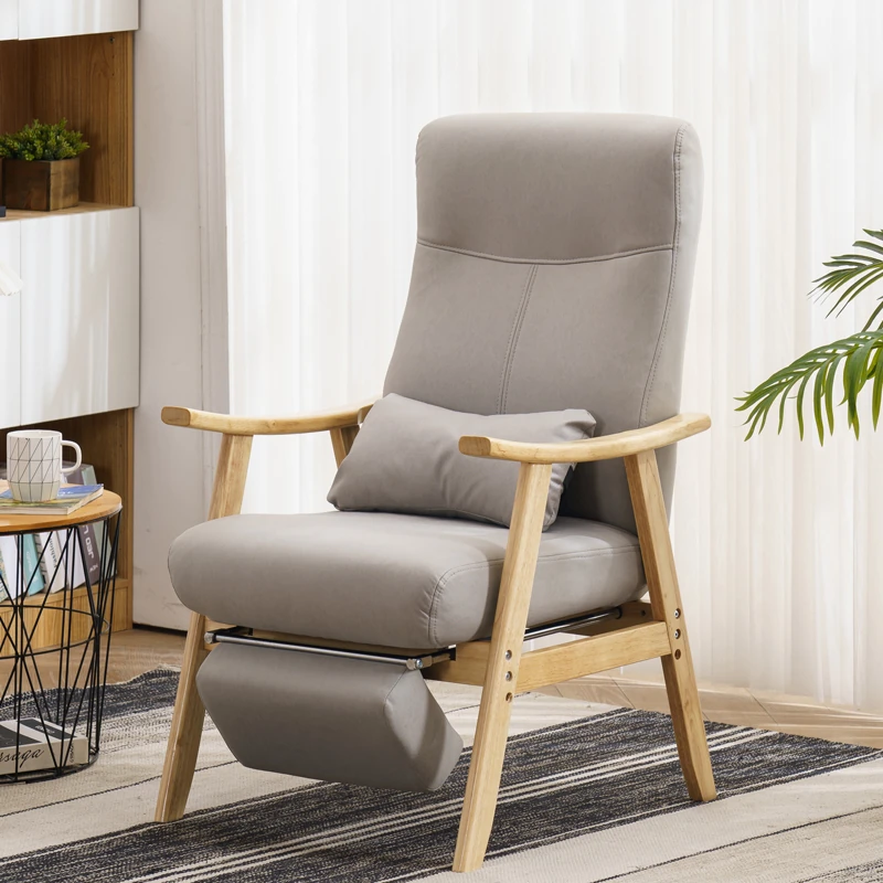 モダンな無垢材製のシニア向けリクライニングソファ、昼寝にも最適!バルコニーやリビング、寝室にぴったりのコンパクトな一人掛けチェア。快適な休息タイムを実現します。