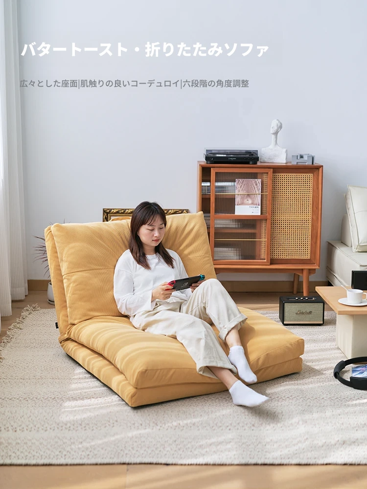 楽々リクライニングソファタタミ、折りたたみ式の一人用ベッド兼用シート!学生にも最適、リラックスできる背もたれ付き。バルコニーでも使える、おしゃれで快適な一人用リクライニングチェアです!
