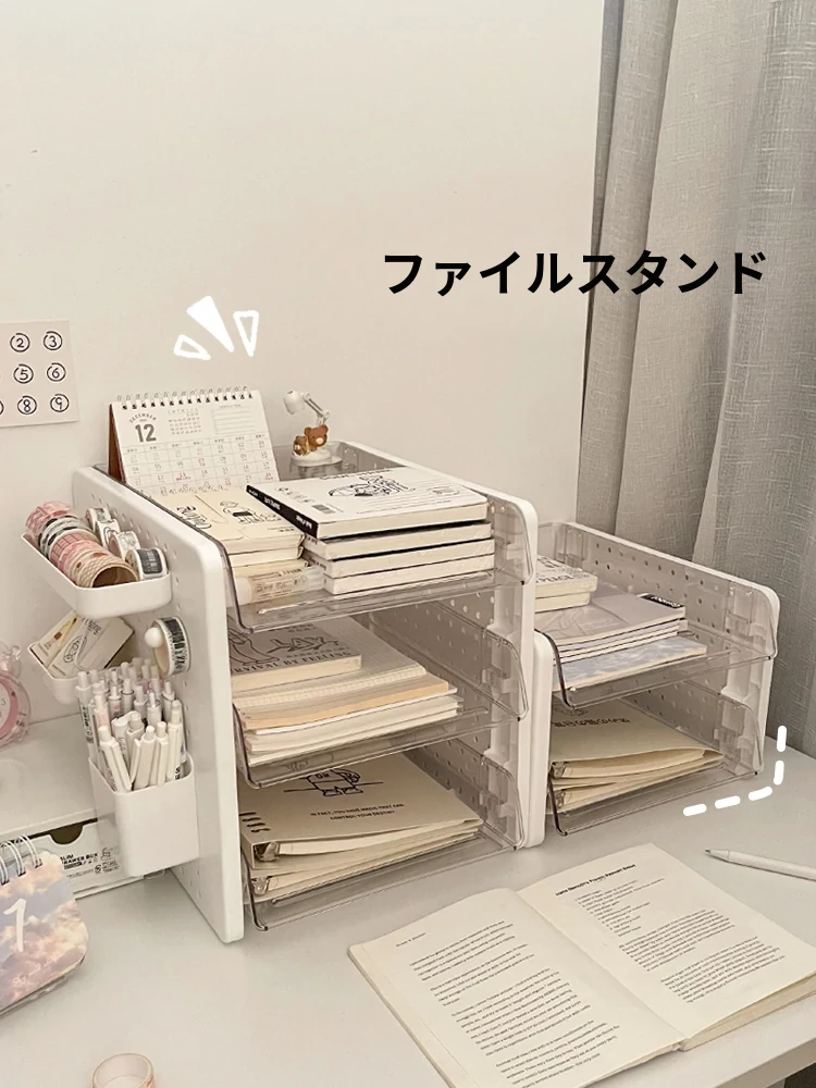 透明デスクファイルスタンド - 多機能ボックスで本や資料を整理!オフィスや書斎にぴったりなマルチレイヤーデスクドロワー収納ラック。すっきりとした空間を実現し、作業効率をアップ!