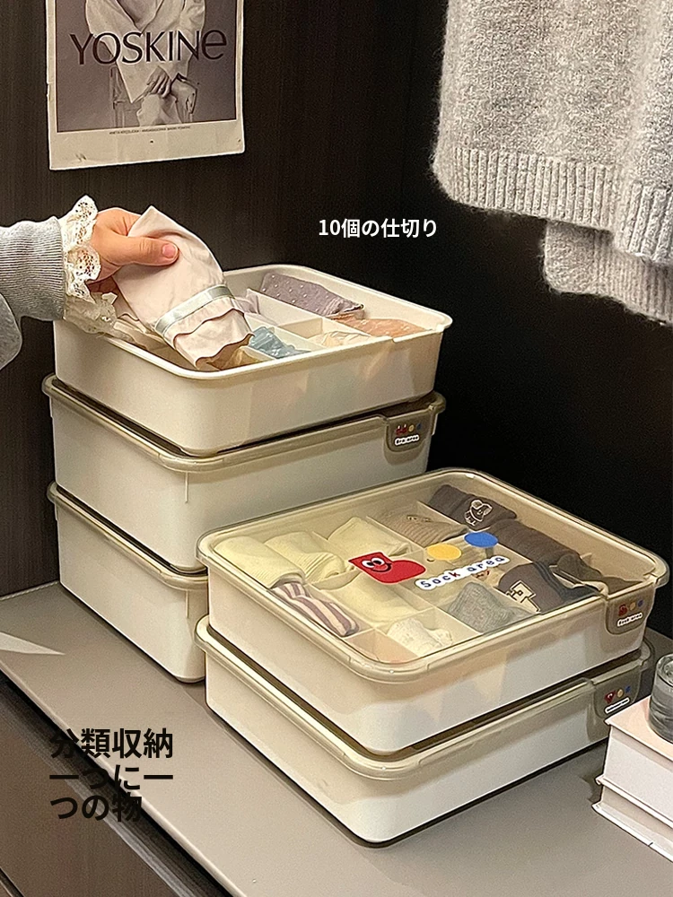 魅力的下着収納ボックス - 蓋付きで防塵!ブラジャーや下着をすっきり整理、仕切り付きで使いやすさ抜群!おしゃれで機能的な収納アイテムです。