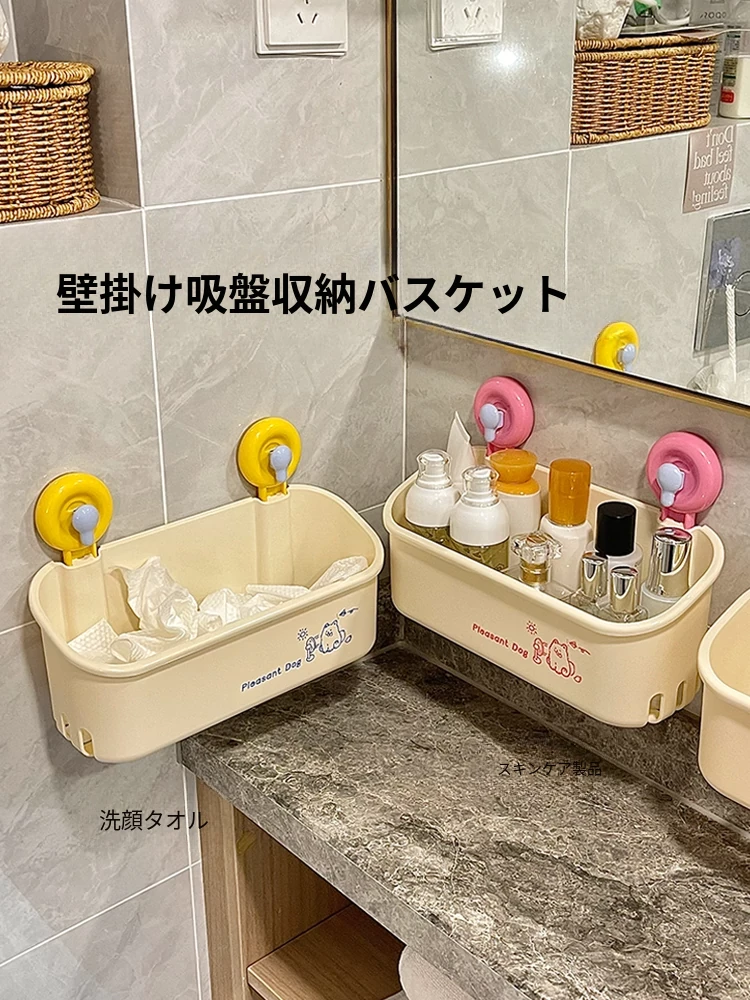 バスルーム用吸盤式収納ラック - 壁に穴を開けずに簡単取り付け!洗面用具やタオルをスッキリ整理できる便利アイテム!使いやすさ抜群で、清潔感を保つバスルームを演出します。