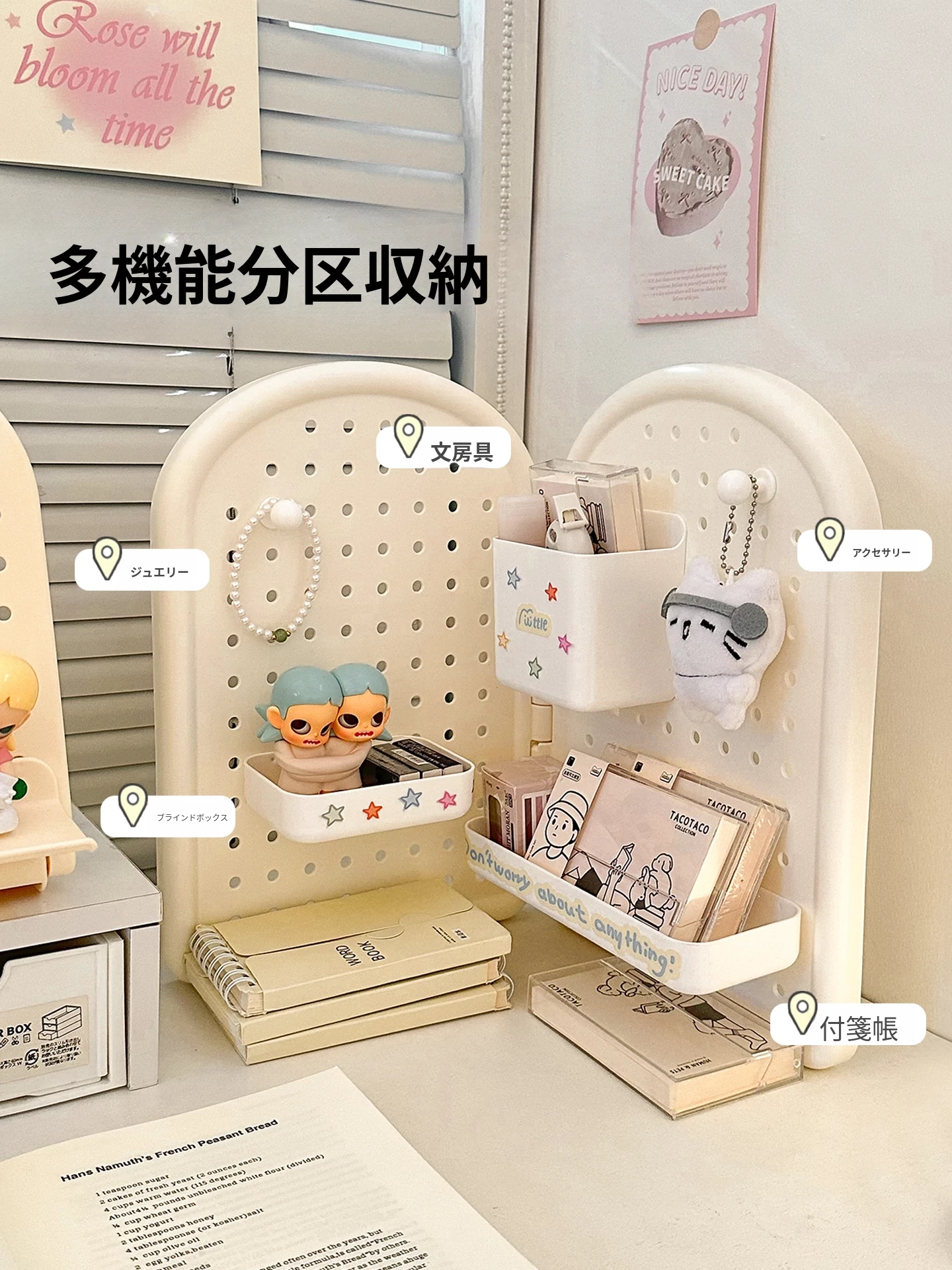 角にぴったりの収納ボックス!穴あきボードでデスクをスッキリ整理。仕切り付きの便利な収納ラックで、文房具や小物もすっきり収納。スペースを有効活用するマストアイテム!