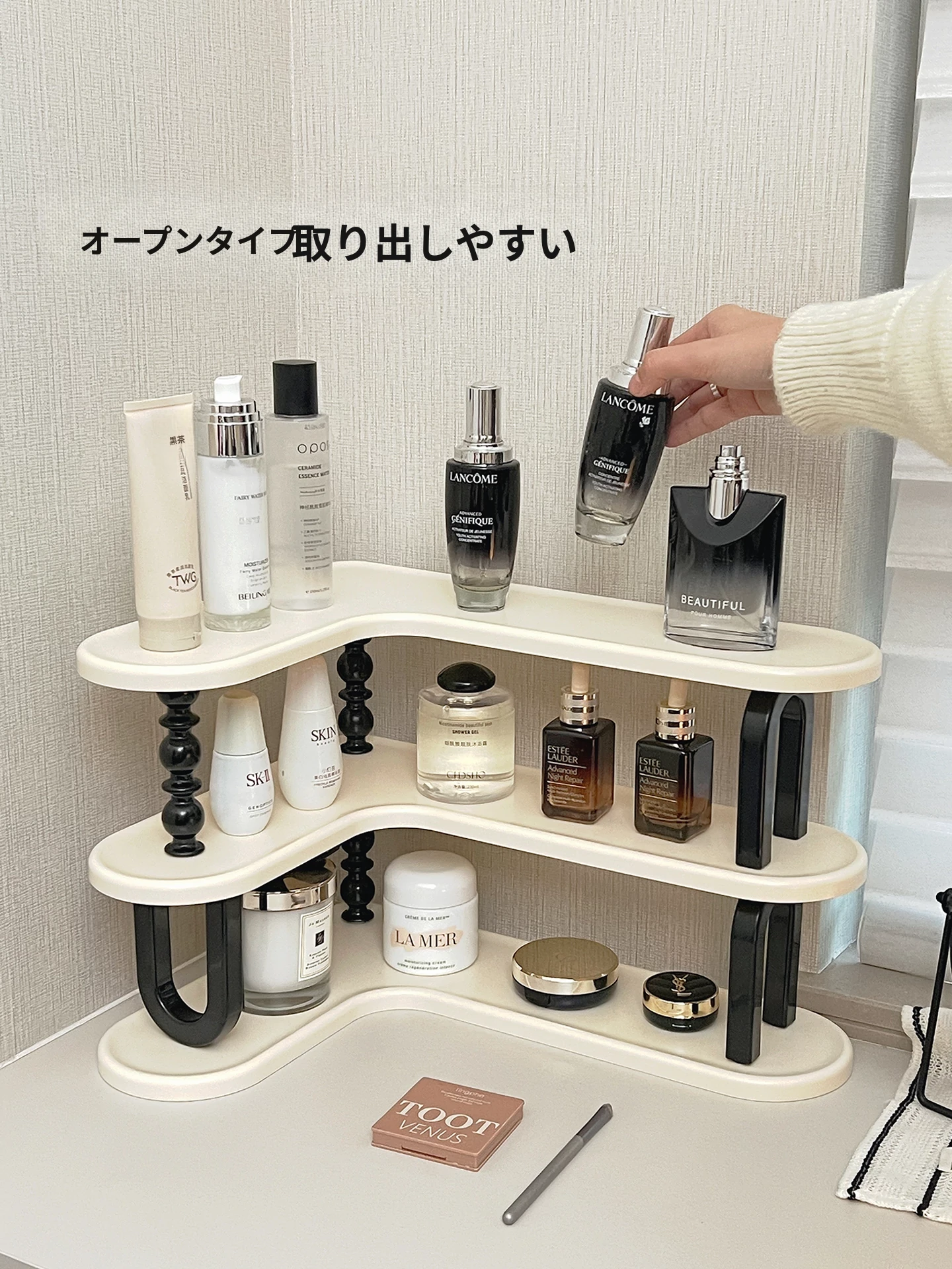 高級感漂う化粧品収納ラック -玄関やドレッサーに最適!ジュエリー、香水、リップ、スキンケアを美しく整理整頓。あなたのスタイルを引き立てるデザインで、すっきりとしたデスクトップを実現!
